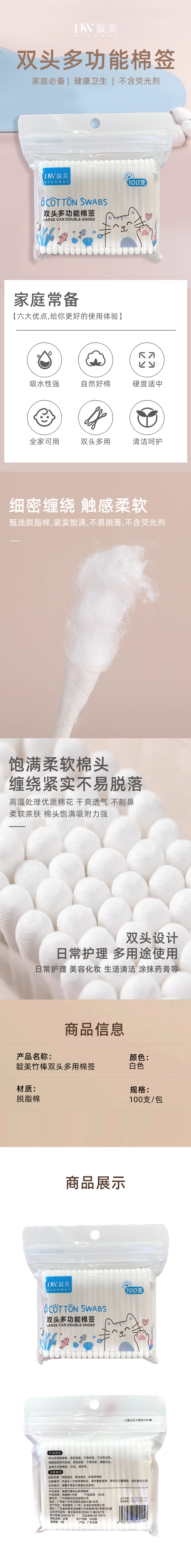 靛美竹棒双头多用棉签100支【21003892】