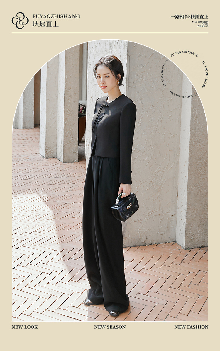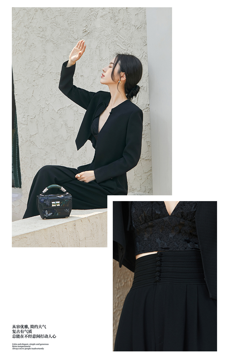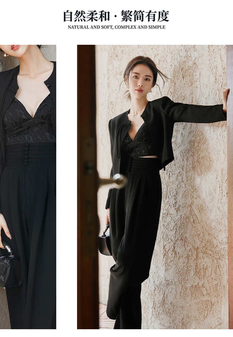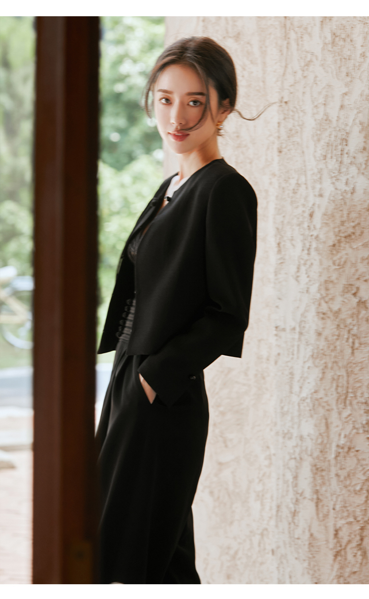 新中式短款西装套装女小众设计感短外套休闲裤两件套