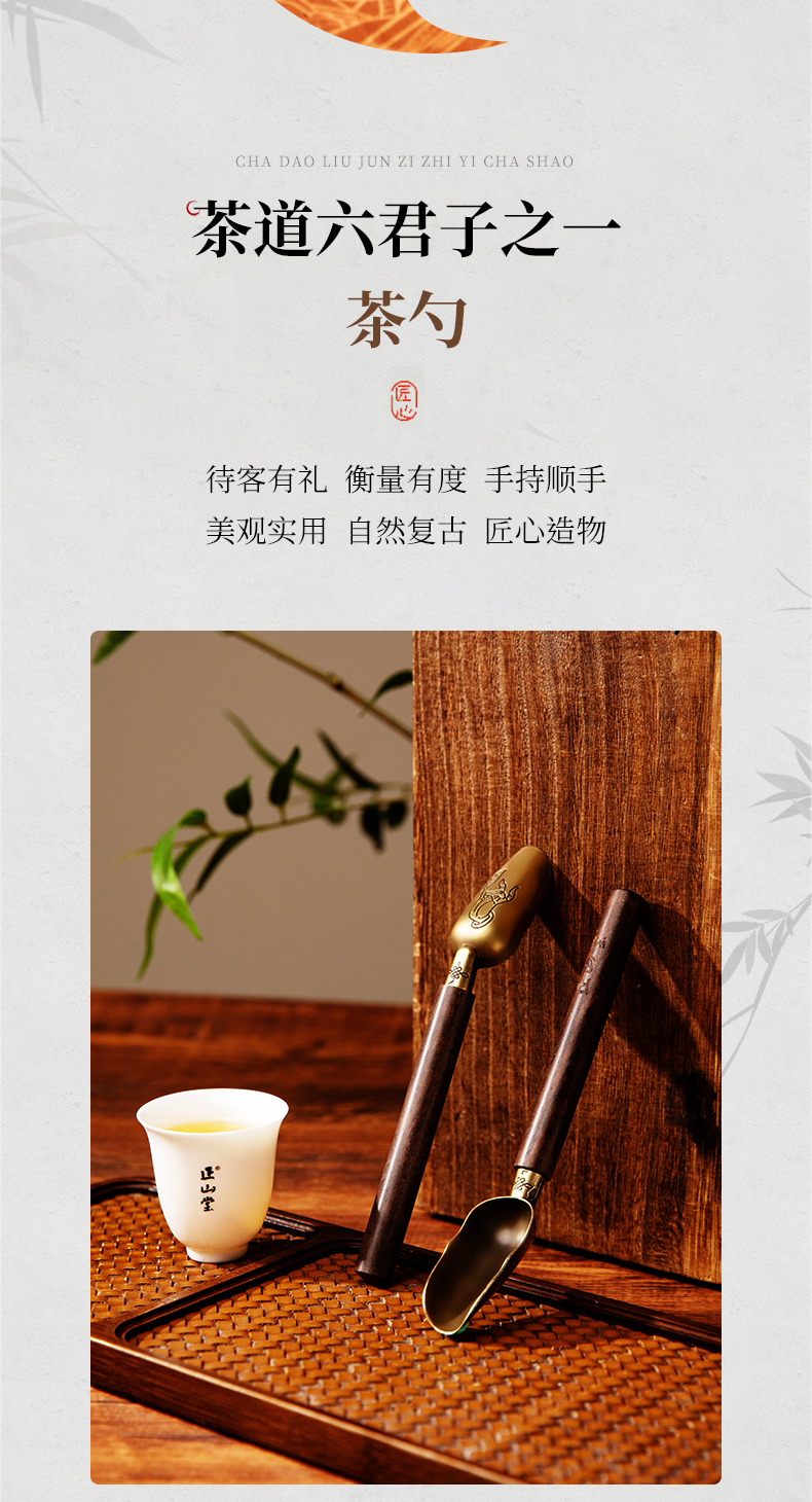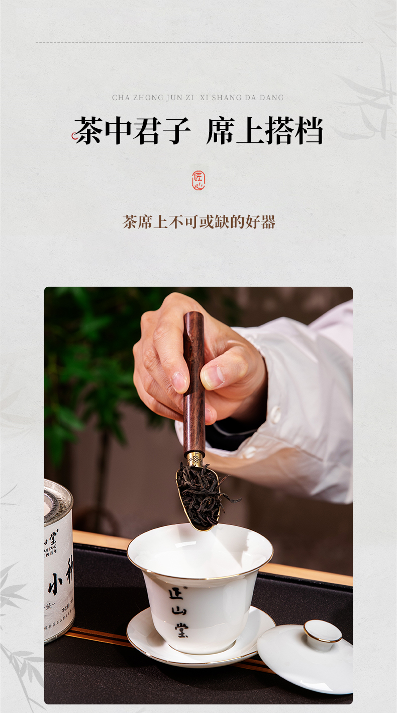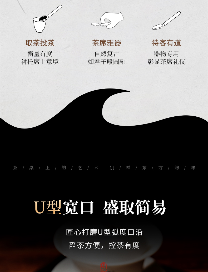 正山堂 茶勺 锌合金黑胡桃木复古 高端U型宽口茶匙茶具泡茶工具