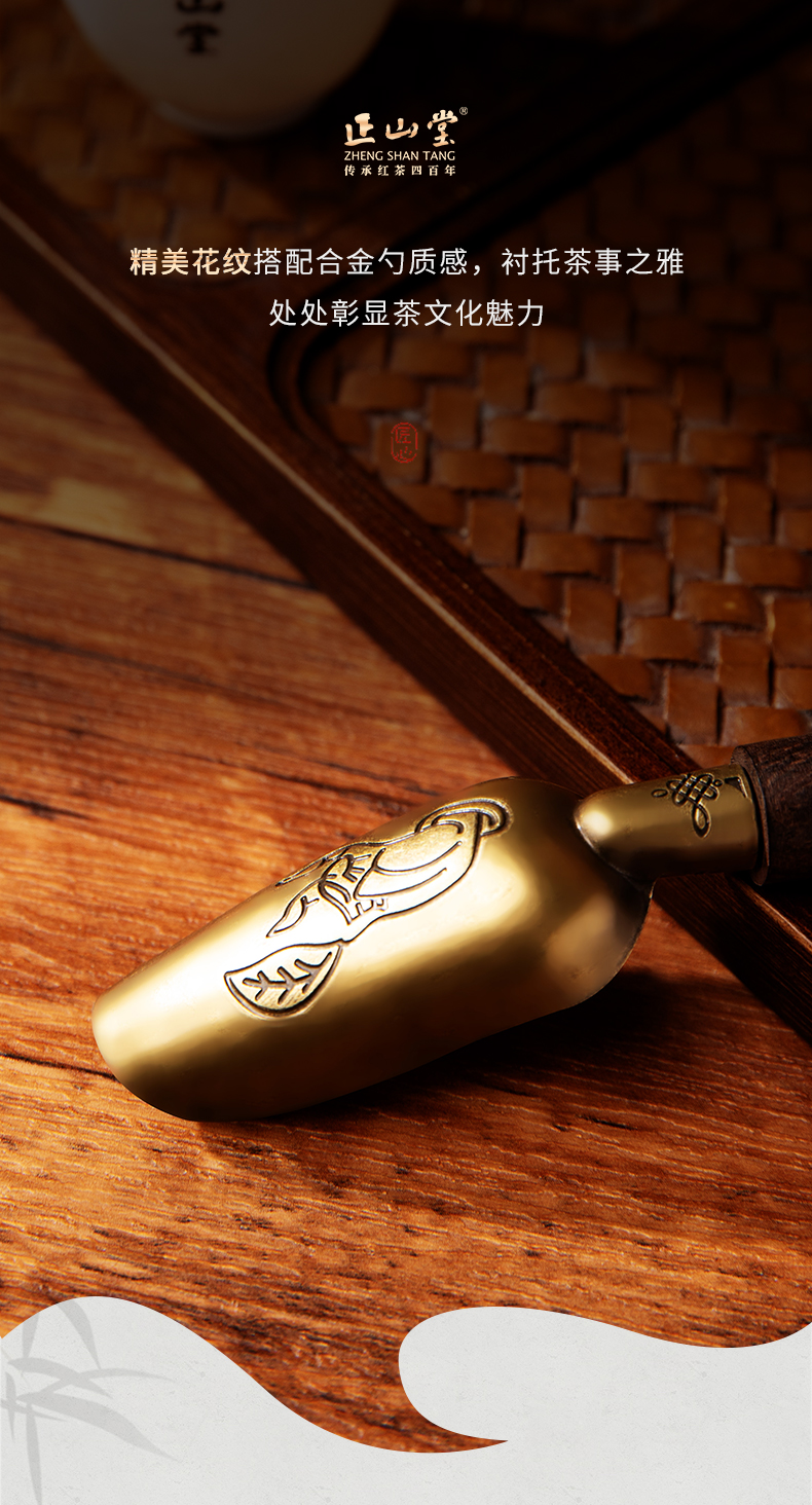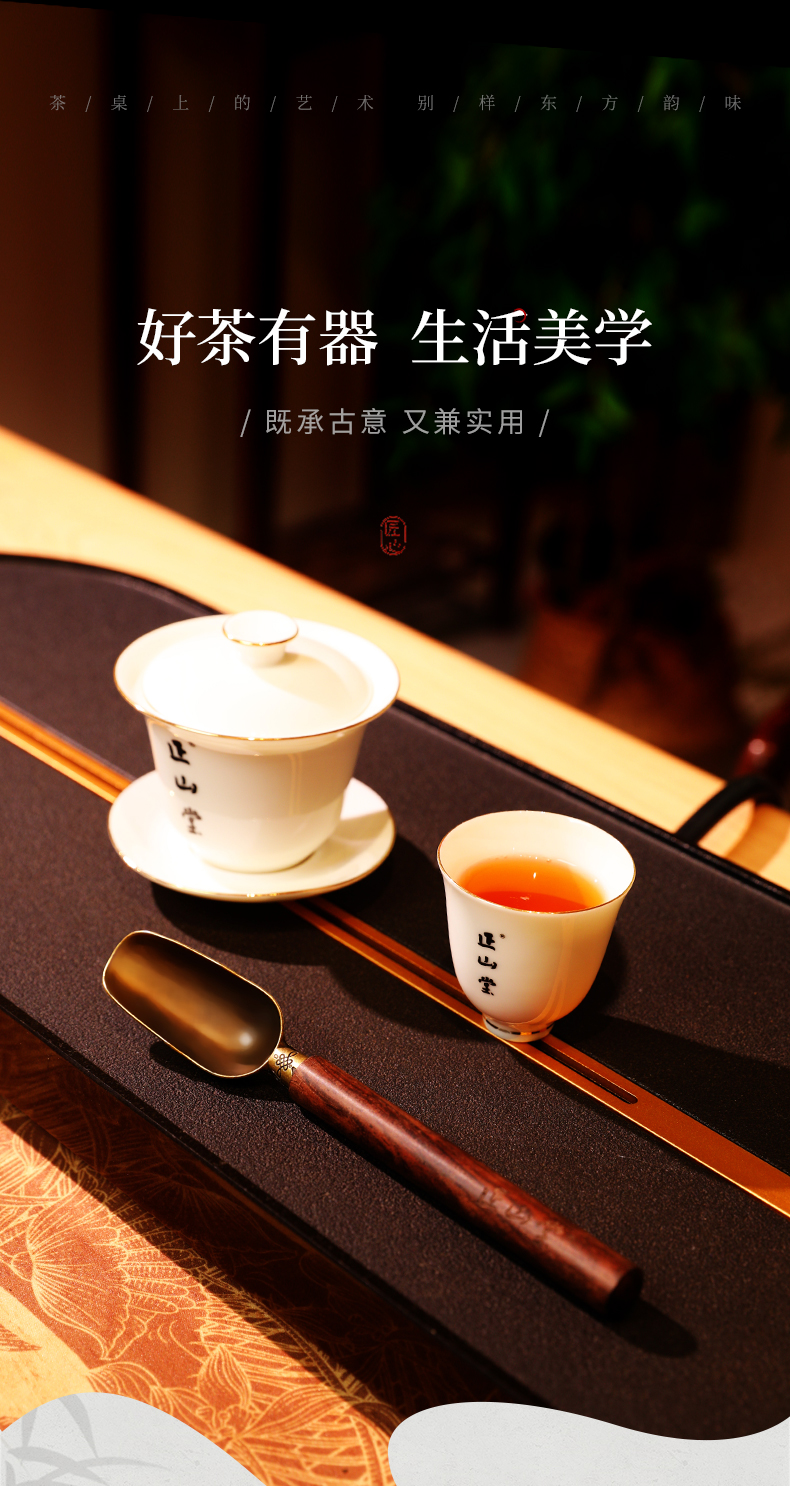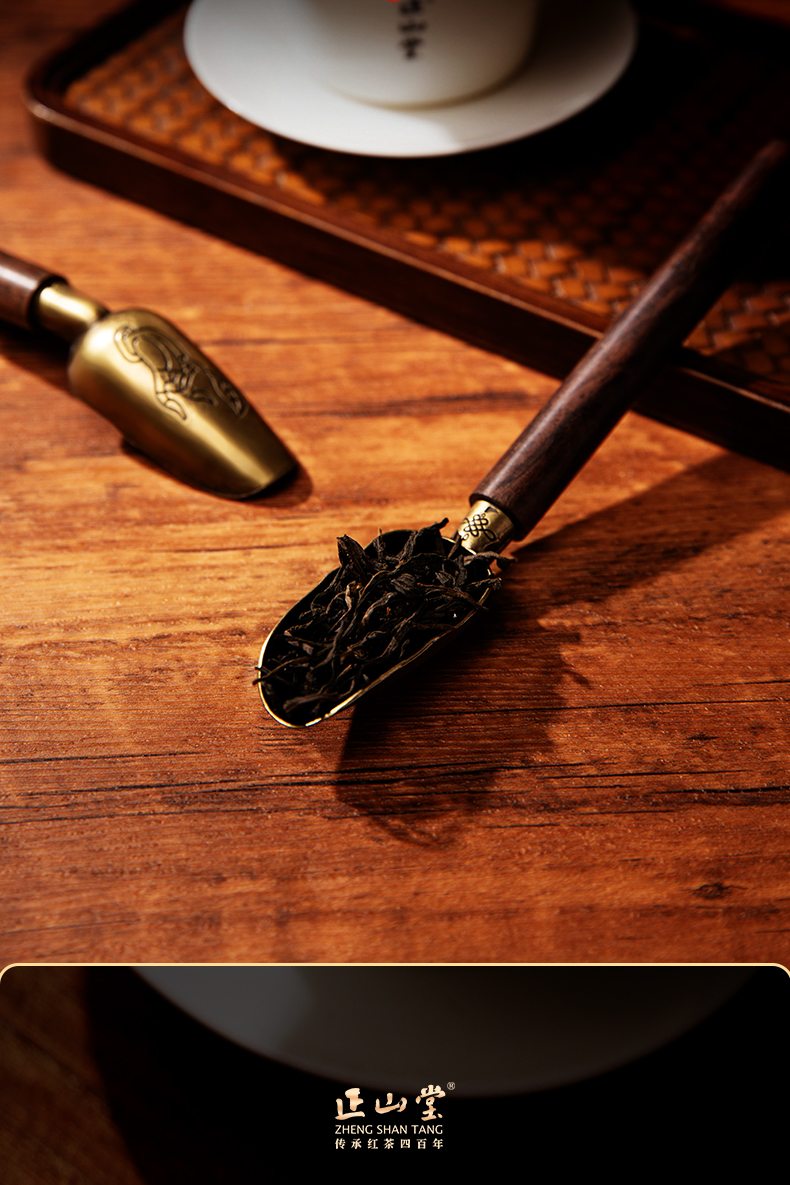 正山堂 茶勺 锌合金黑胡桃木复古 高端U型宽口茶匙茶具泡茶工具