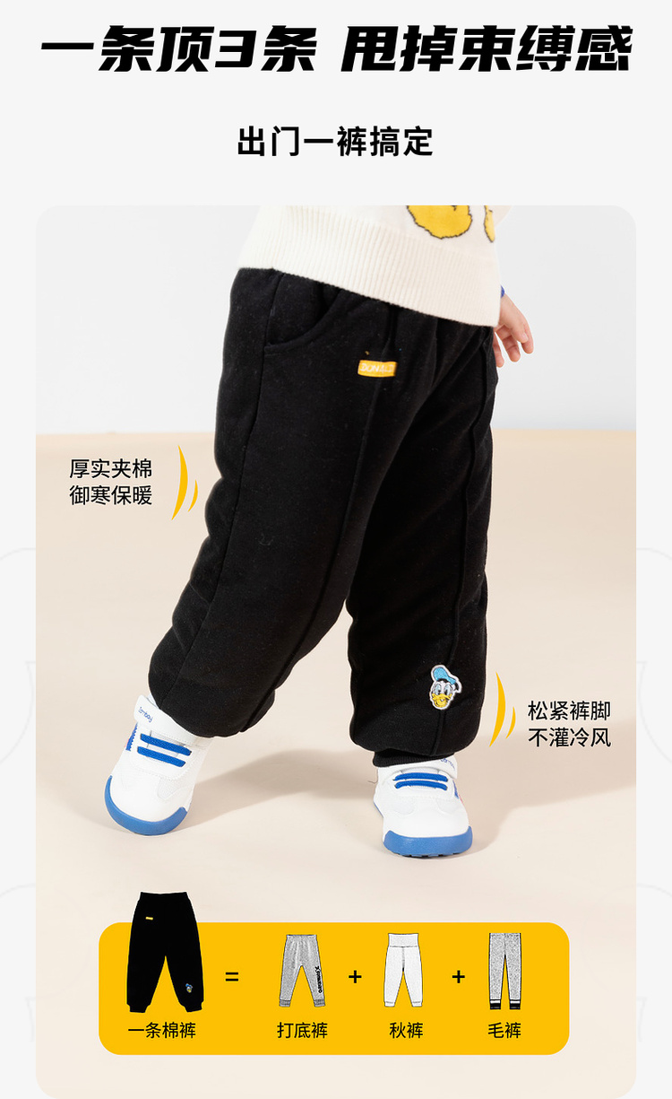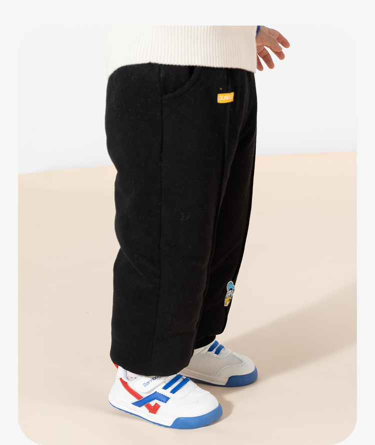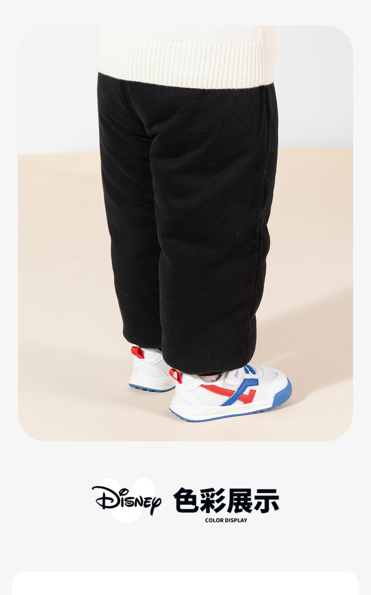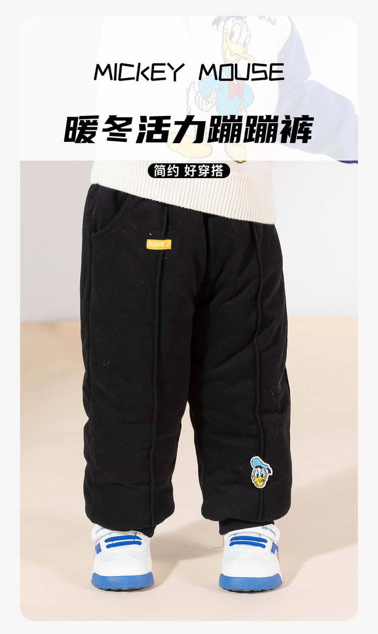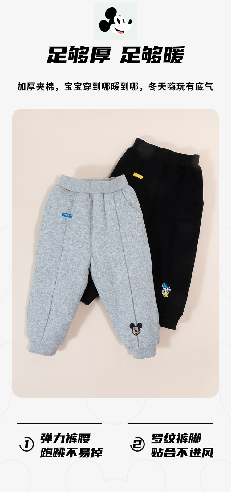 迪士尼童装男童加厚保暖束脚裤简约运动裤秋冬款宝宝夹棉长裤234K1373