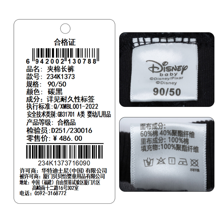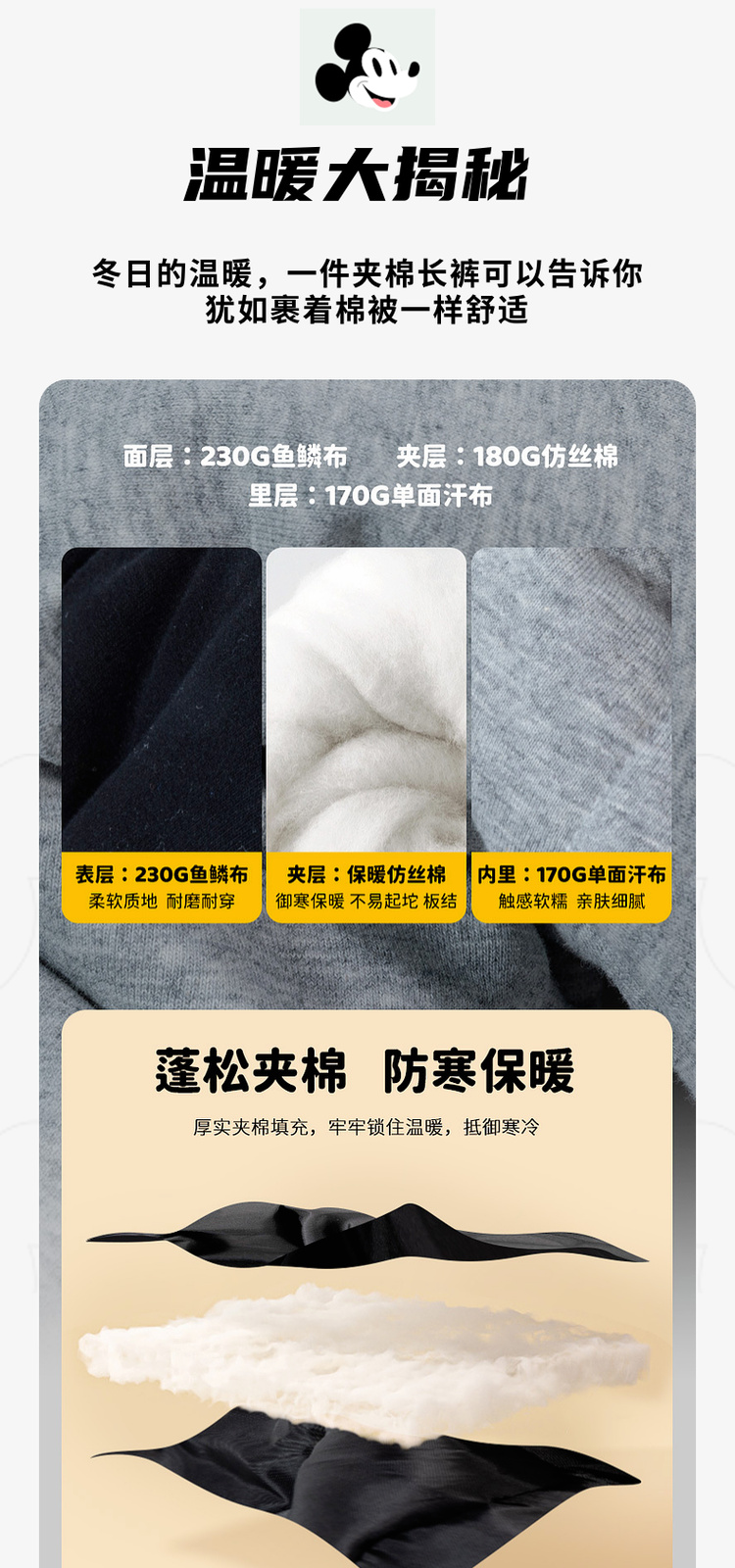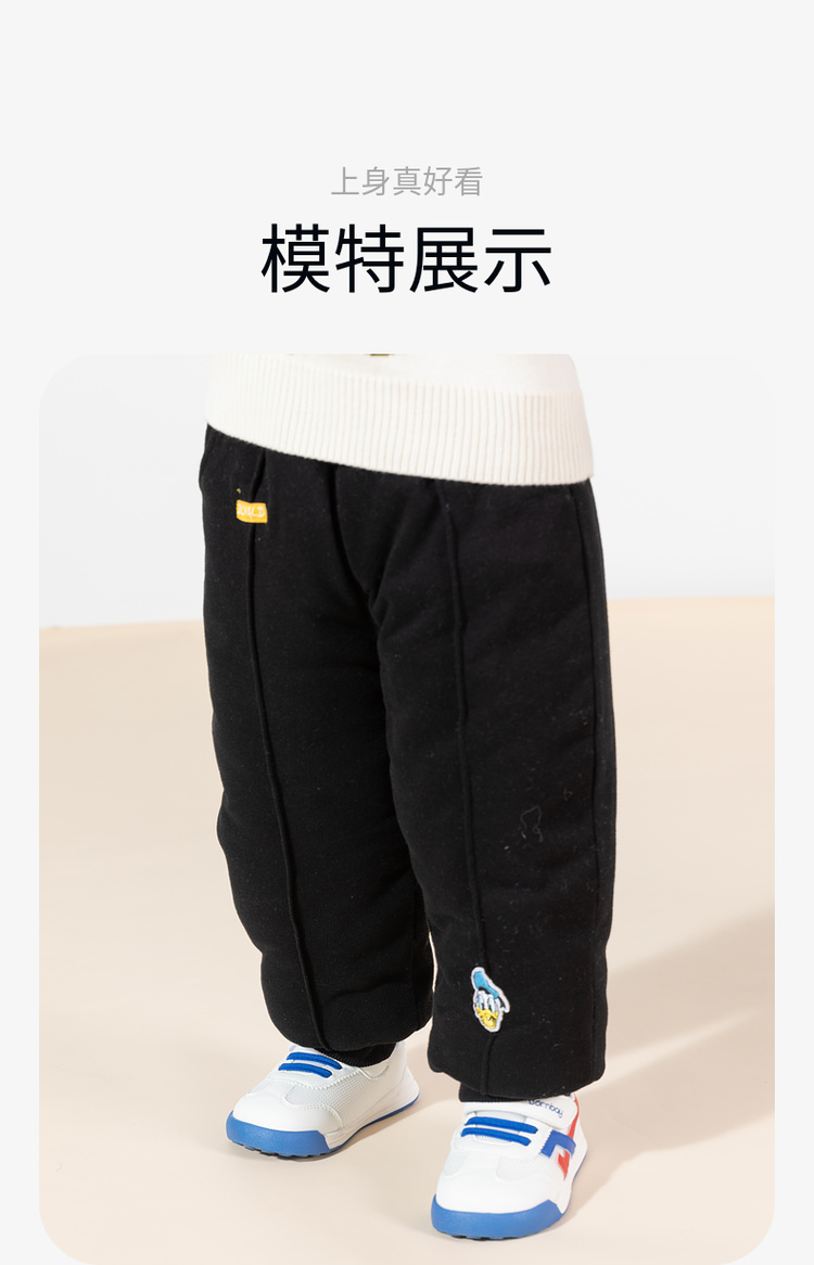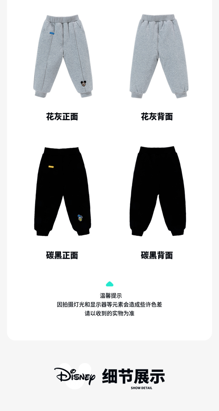 迪士尼童装男童加厚保暖束脚裤简约运动裤秋冬款宝宝夹棉长裤234K1373