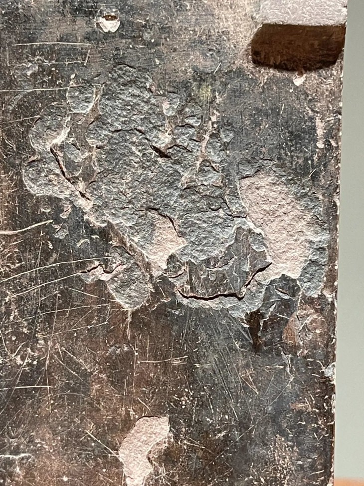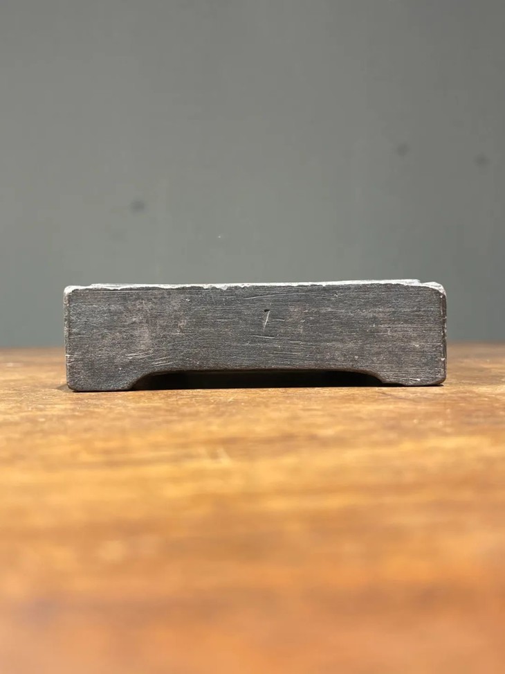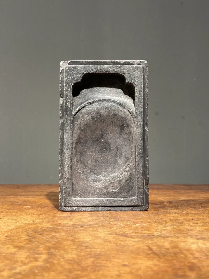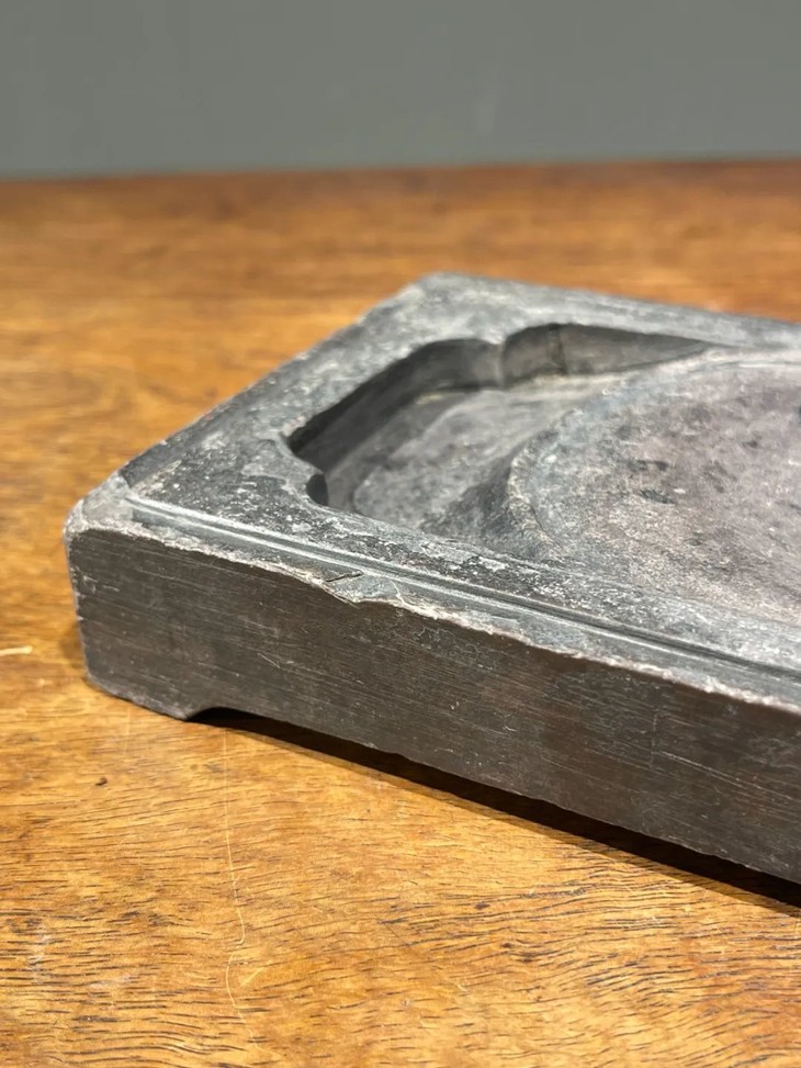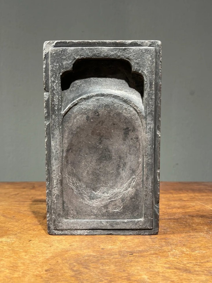 此天然端石刻四足长方砚台,如图所示,除边沿具轻微小磕伤与正常使用磨损痕外,整体保存完好。