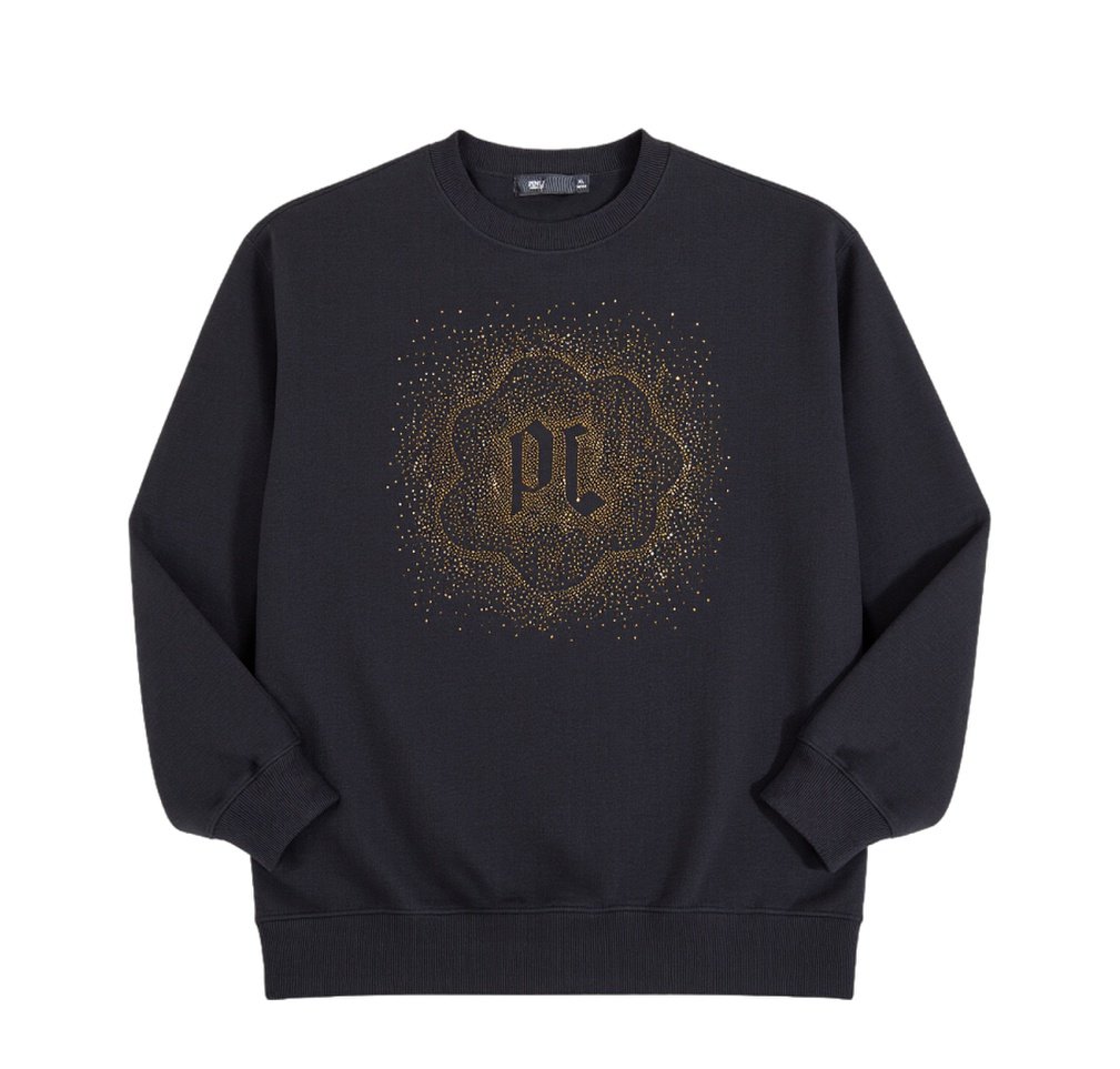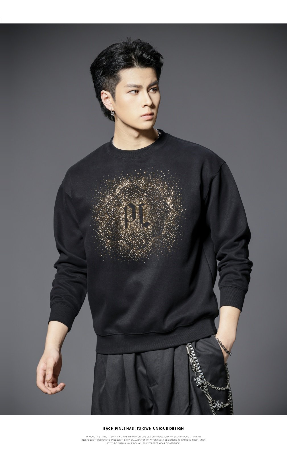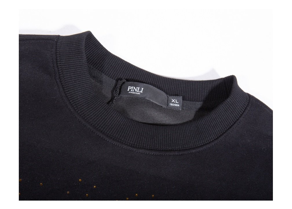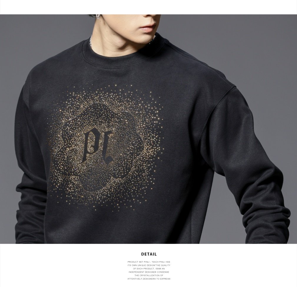 PINLI品立2025秋季新款男士圆领宽松烫钻长袖套头卫衣上衣青年潮BG253109018