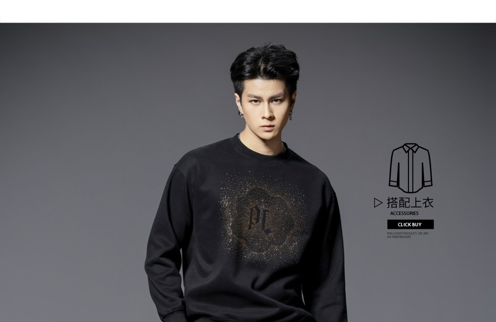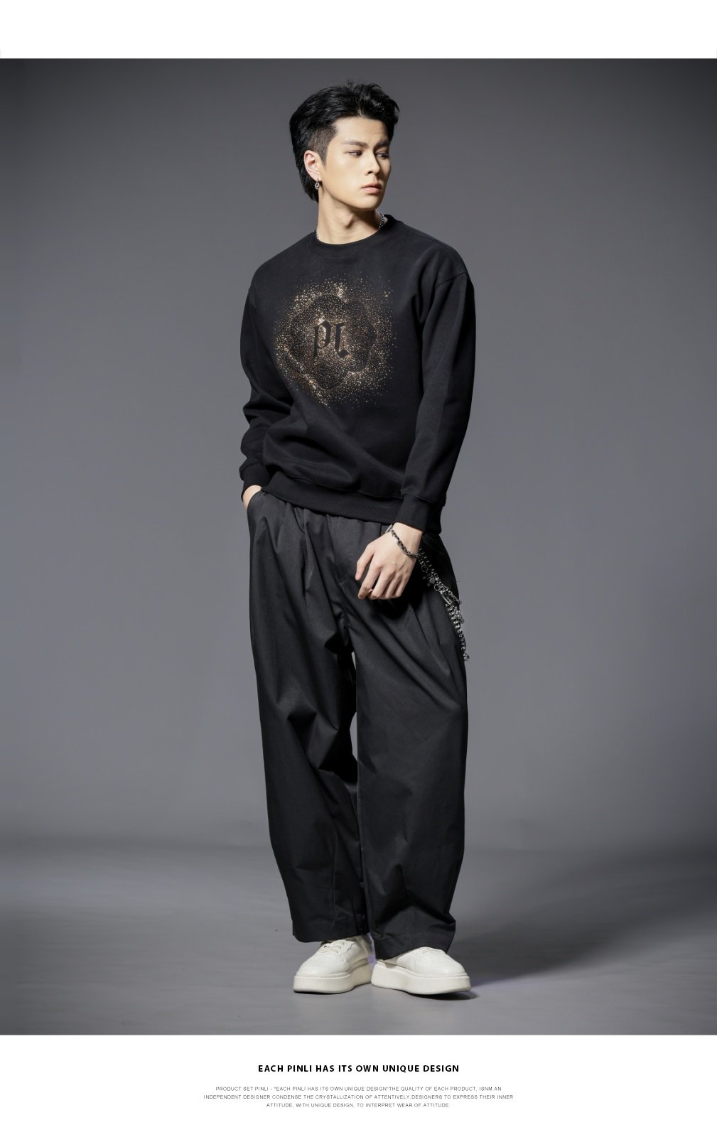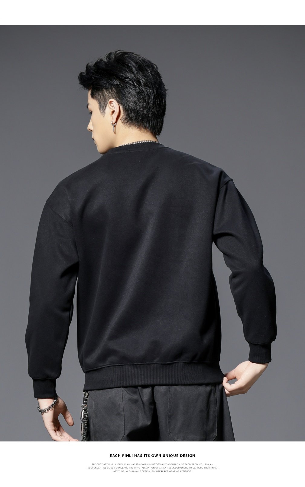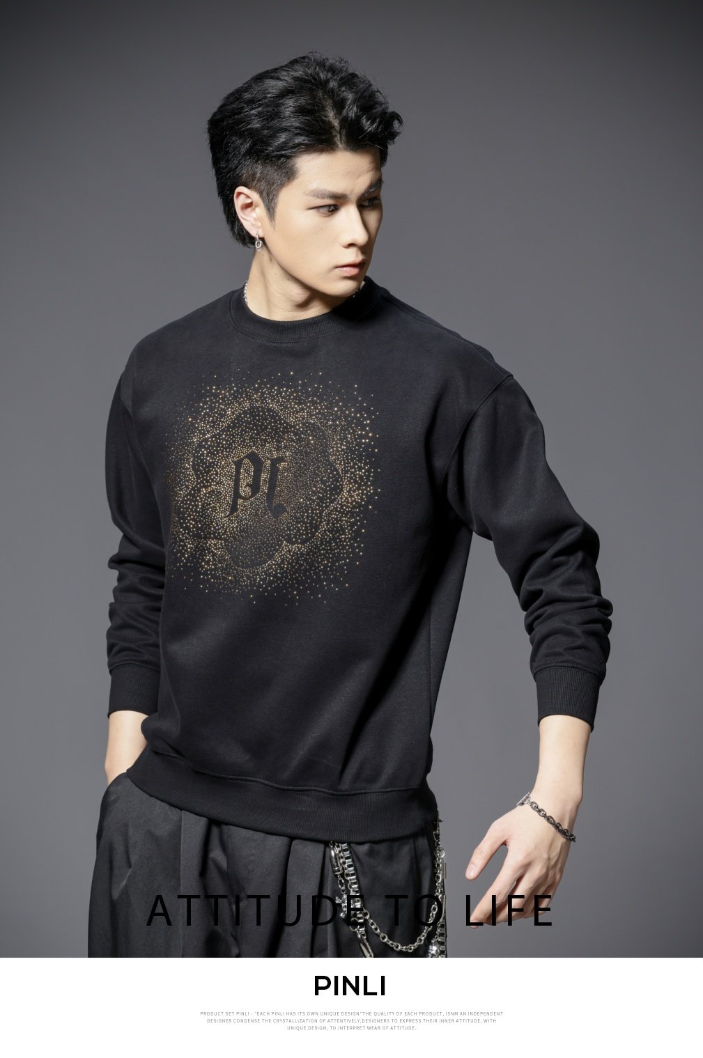PINLI品立2025秋季新款男士圆领宽松烫钻长袖套头卫衣上衣青年潮BG253109018