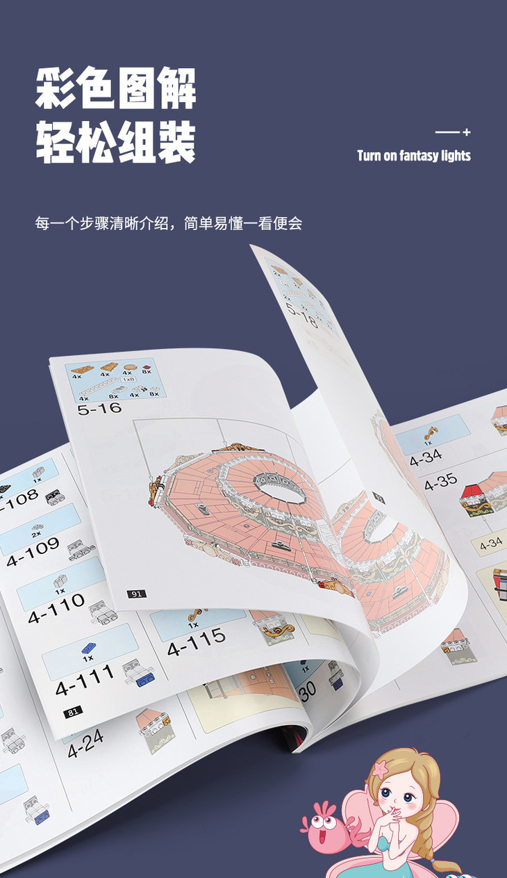 【星堡游乐场】梦幻旋转木马街景女孩儿童益智力拼装积木兼容乐高玩具