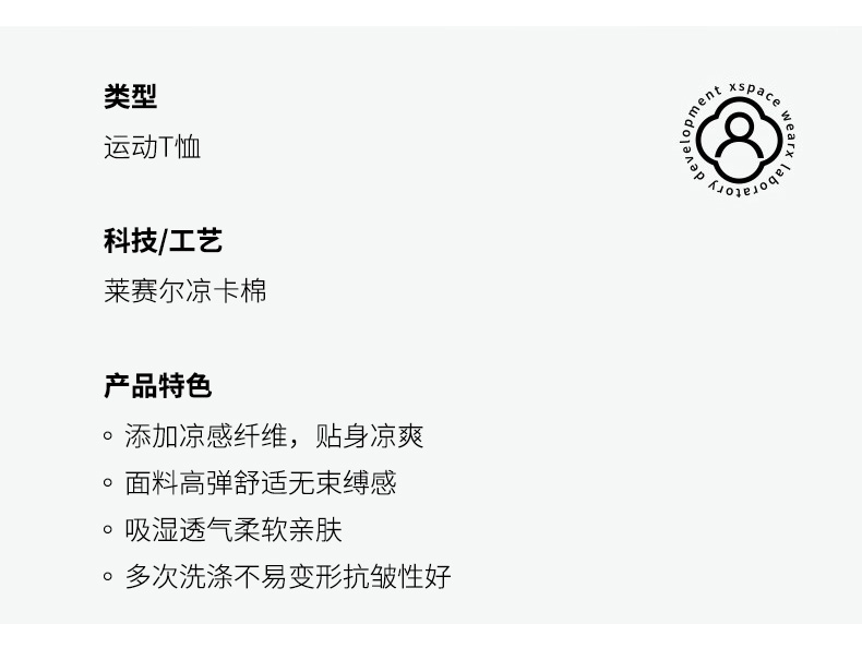 下单5天内发货【吸湿透气 柔软亲肤】完型莱赛尔凉卡棉运动T恤 面料高弹舒适 无束缚感