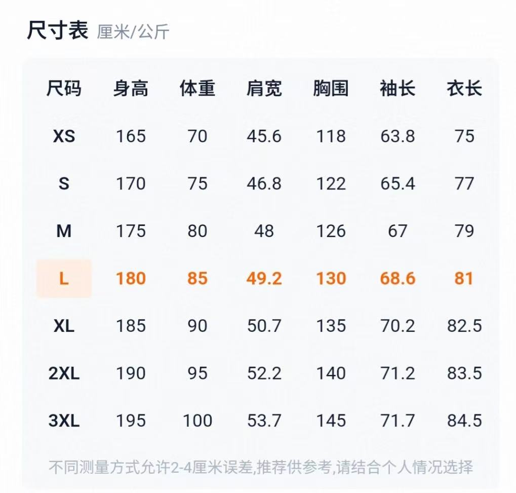 L推荐160到180斤