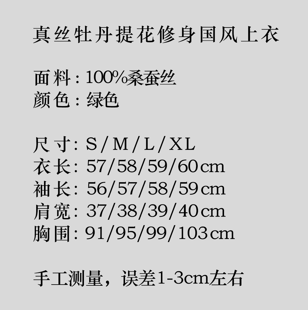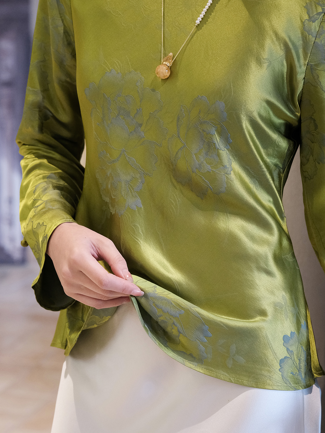 盛唐婧 |真丝牡丹提花修身国风上衣-绿色