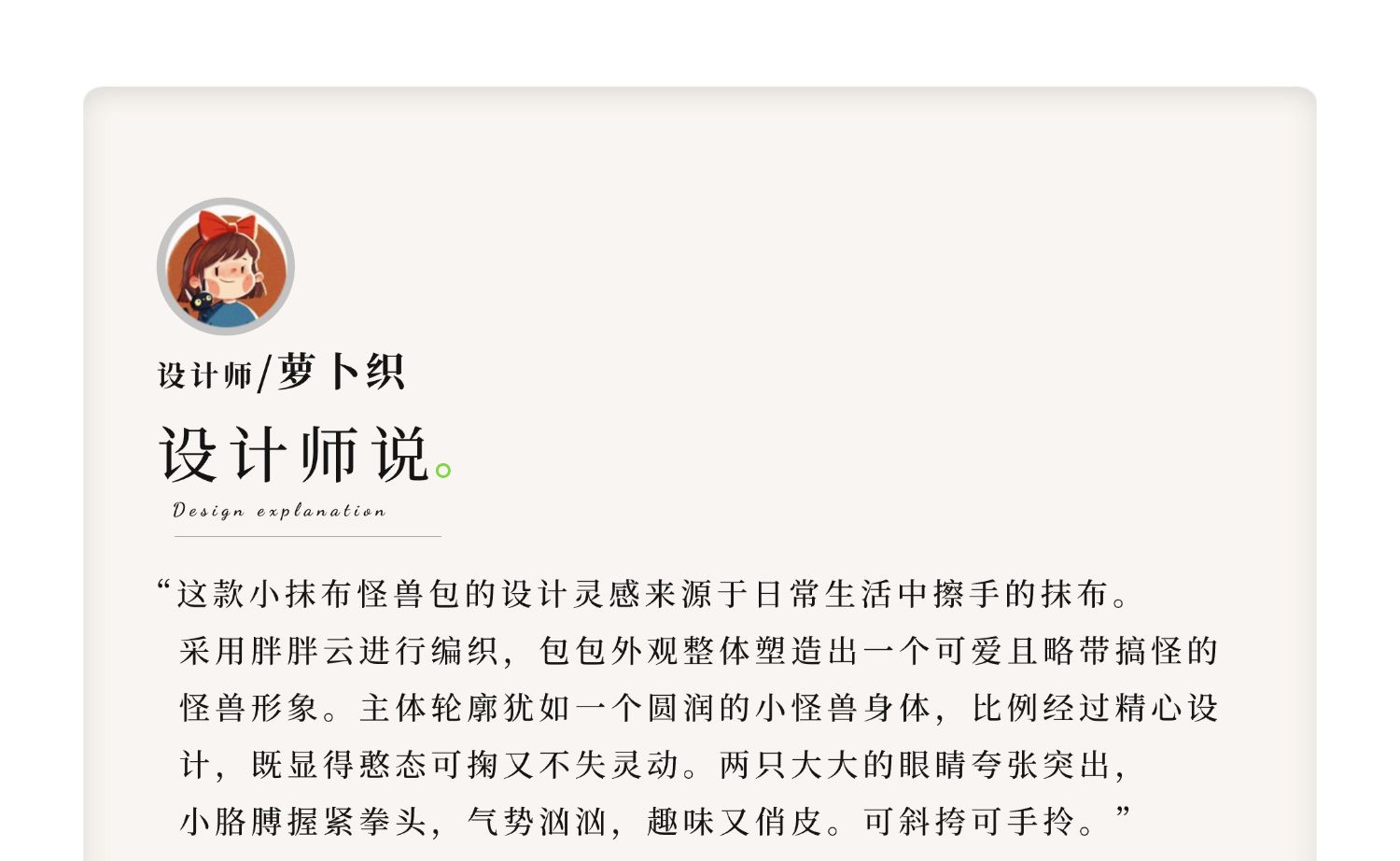 苏苏姐家小抹布怪兽包包手工diy编织钩针毛线团自制包包材料包