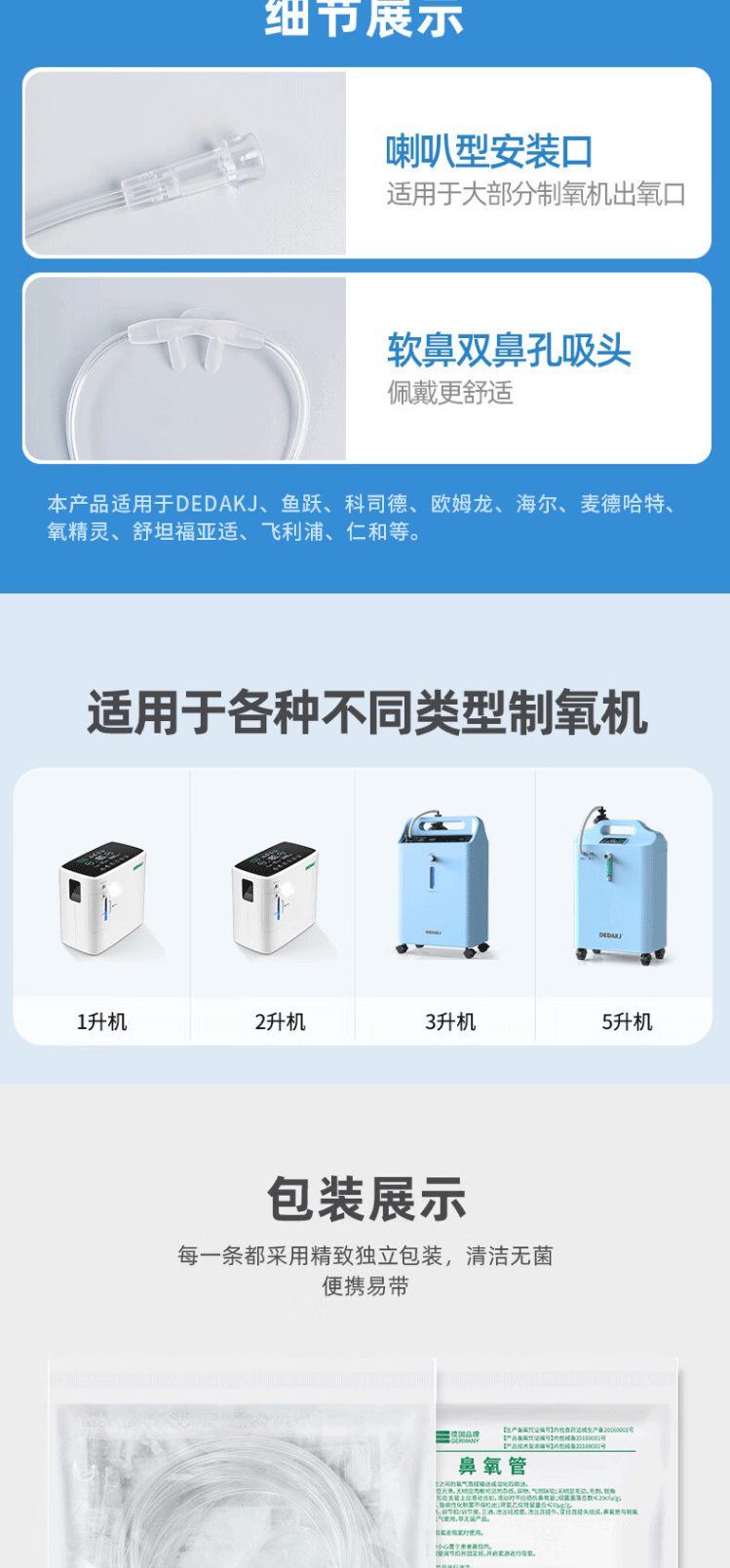 制氧机通用鼻吸氧管加长款2米 (透明)