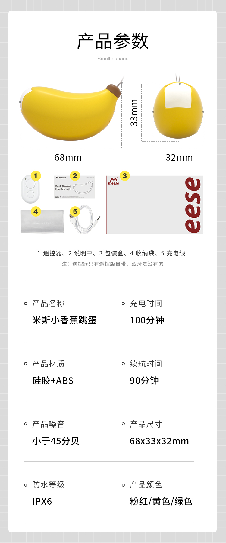 meese米斯朋克小香蕉跳蛋女性用无线远程遥控私处按摩震动蛋自慰器穿戴跳弹女玩具成人情趣性用品 小香蕉【遥控版】