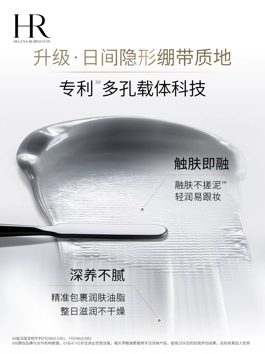 隐形绷带质地,触肤即融,就像有一层绷带撑起皮肤里的胶原网络,让皮肤更丰盈