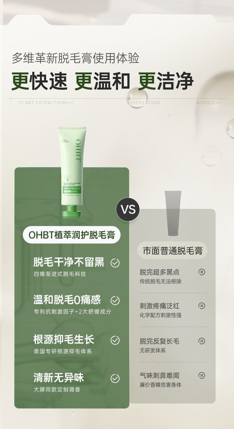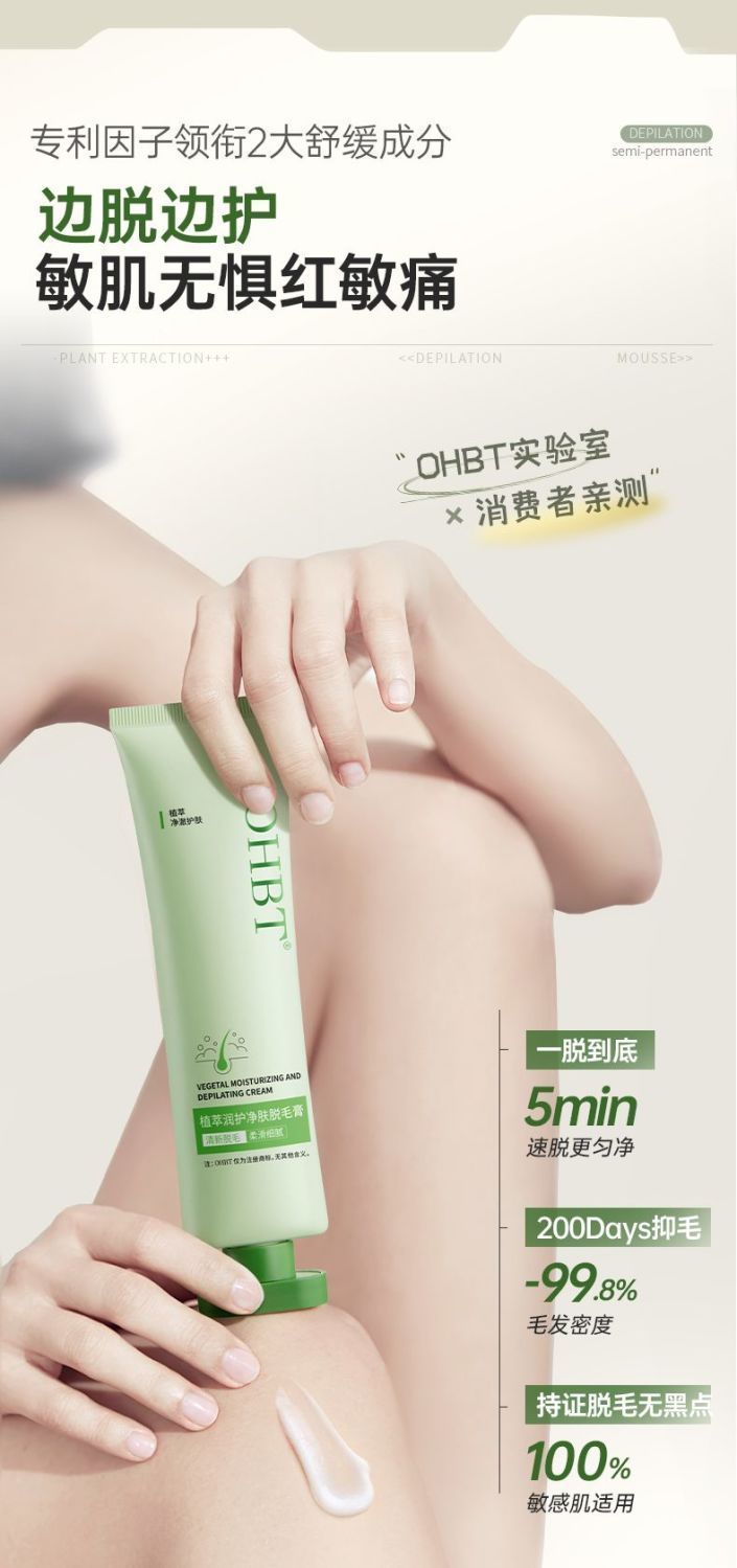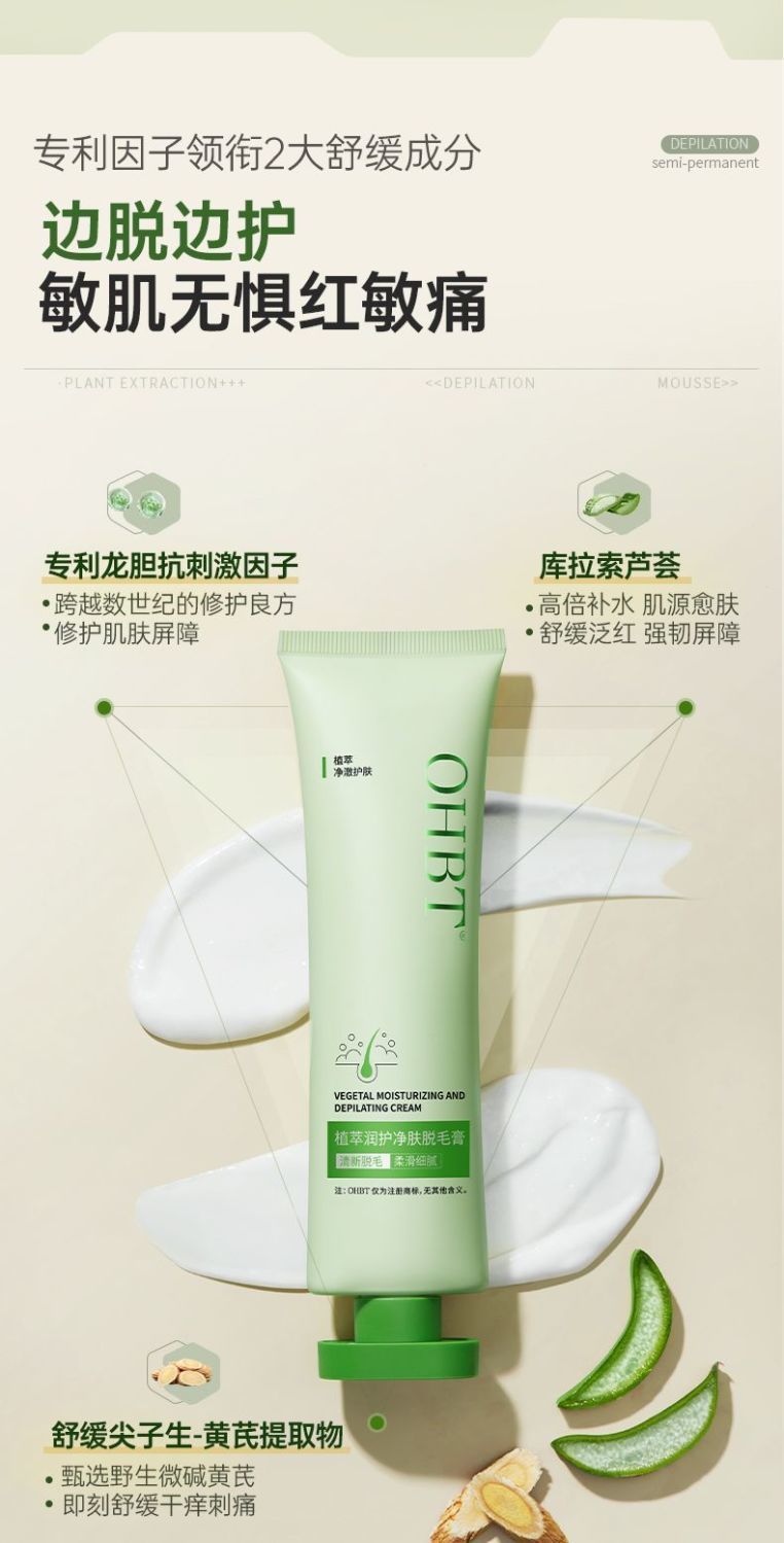 OHBT全身可用脱毛膏温和不刺激抑制生长去根不留黑点去腿毛腋毛女