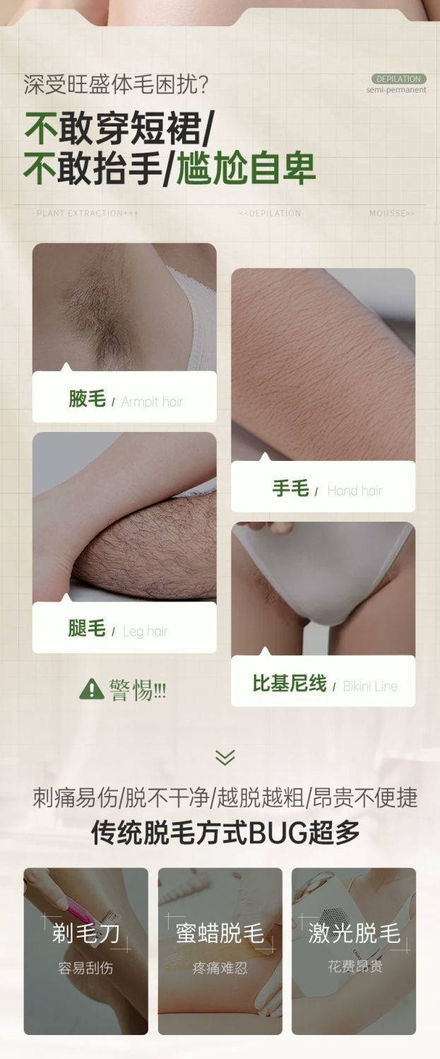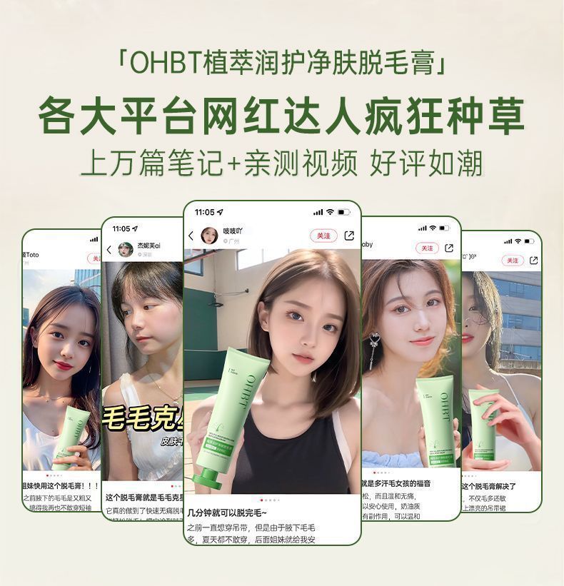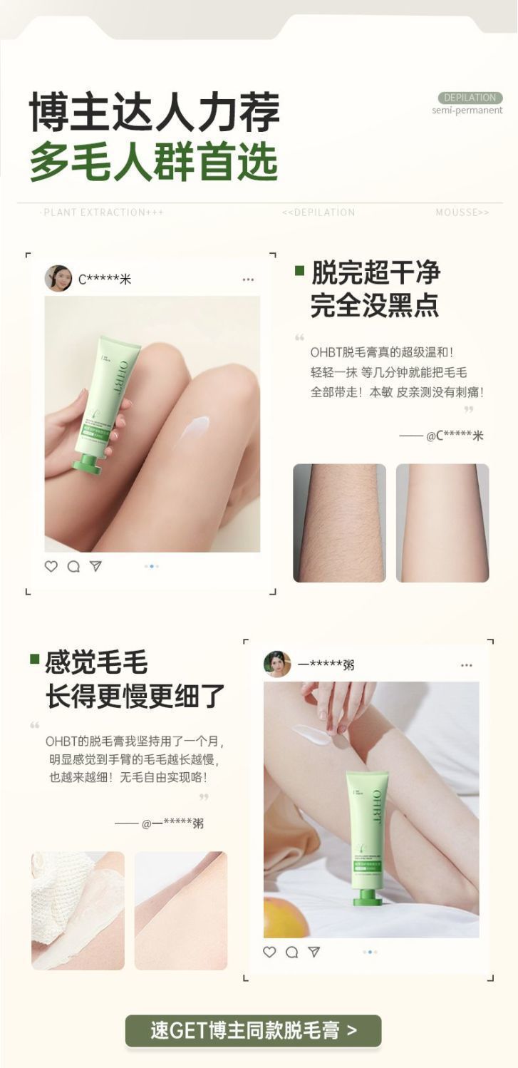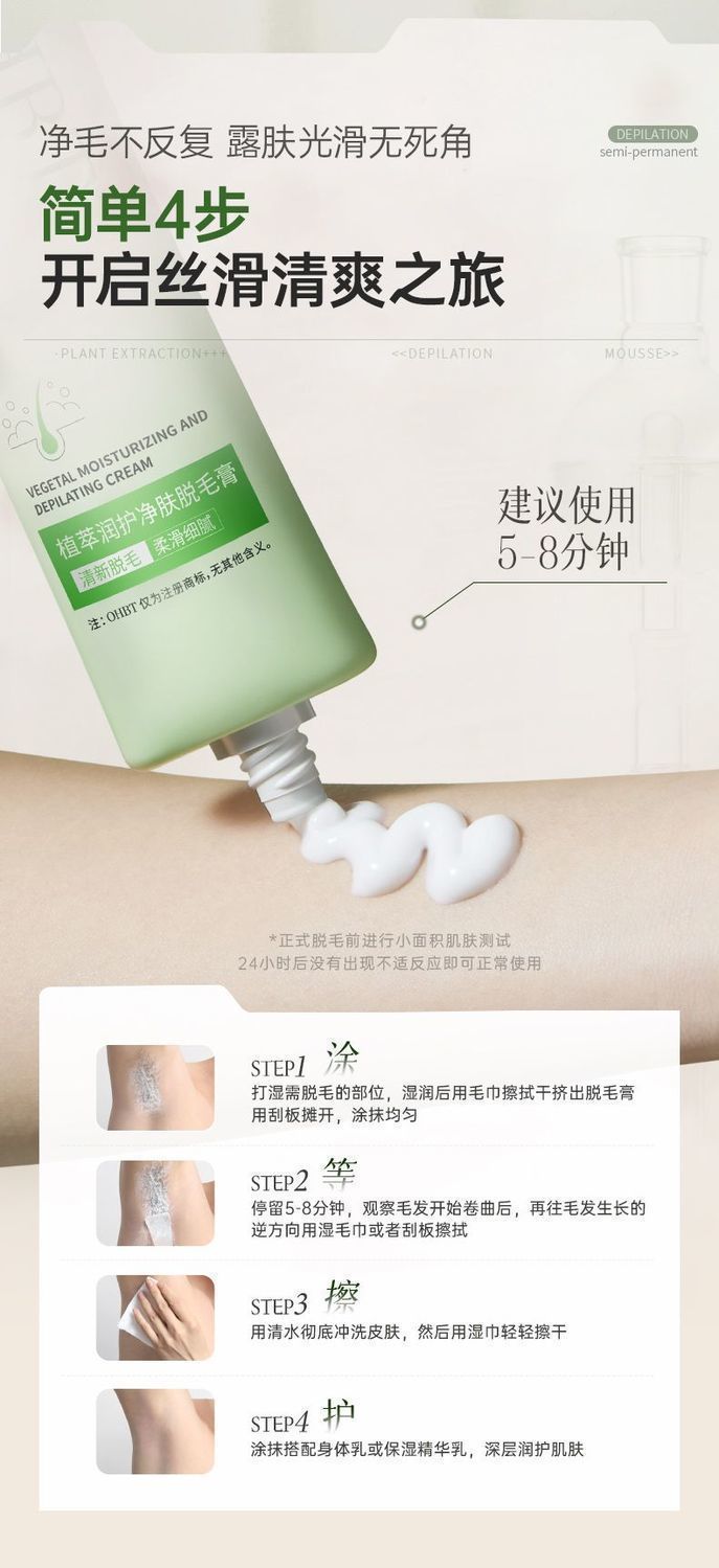 OHBT全身可用脱毛膏温和不刺激抑制生长去根不留黑点去腿毛腋毛女
