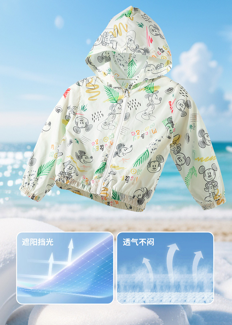 迪士尼【米奇满印涂鸦风皮肤衣】25春夏新款男童户外踏青清爽遮阳外套ZD2ES011