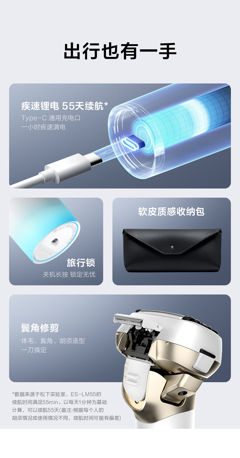松下(Panasonic)全新大锤子2.0剃须刀电动往复式男士刮胡刀进口五刀头Type-c 男LM55黑