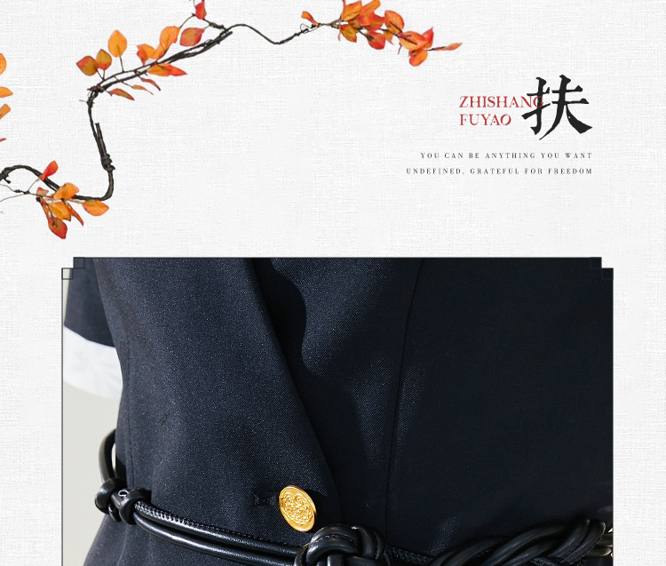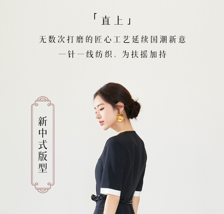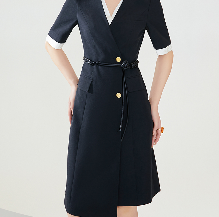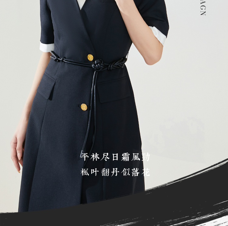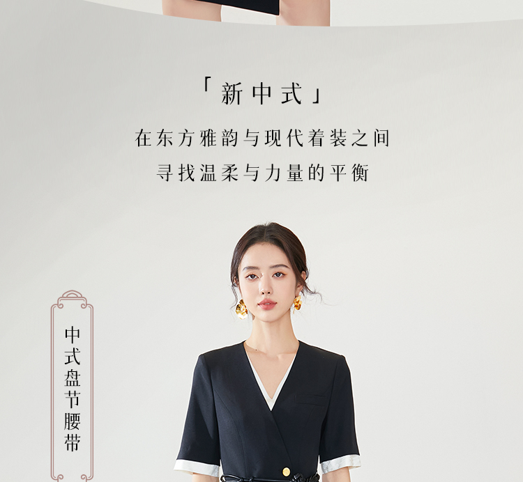 FUYAO扶摇 夏季连衣裙女新款假两件裙子中式盘结腰带设计感西装裙