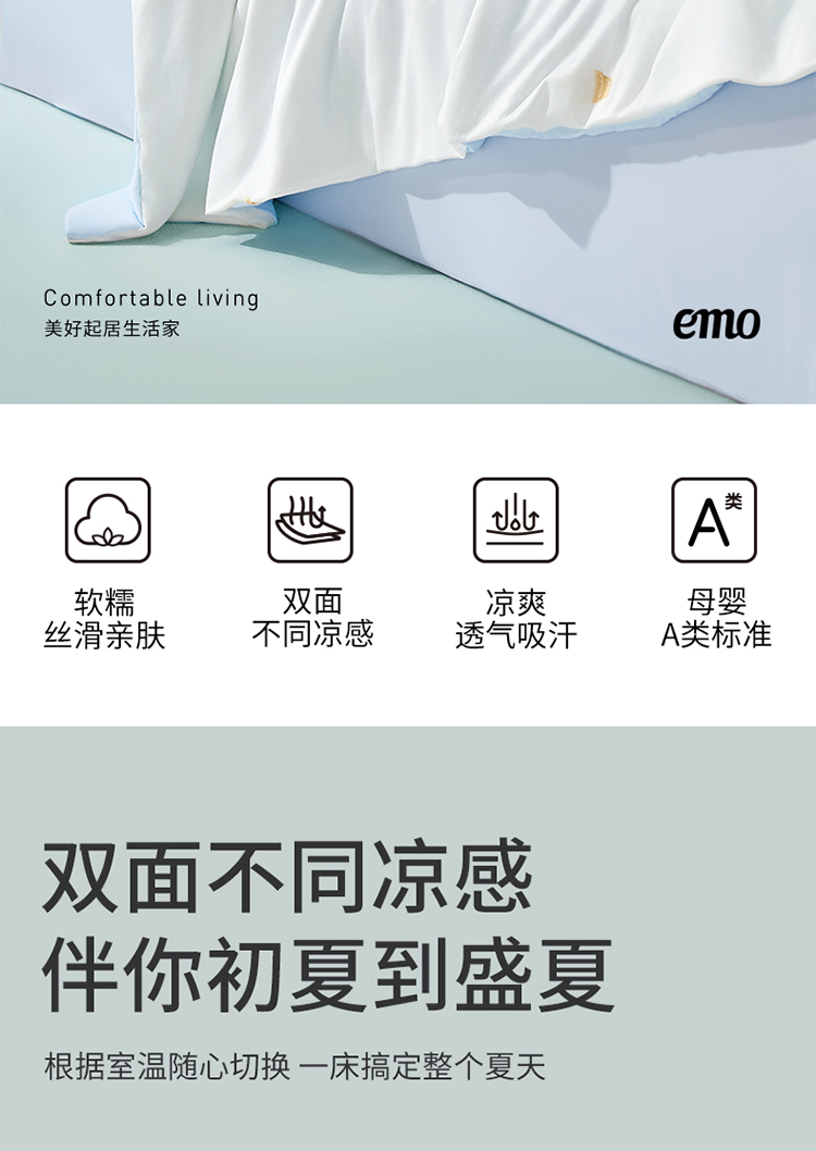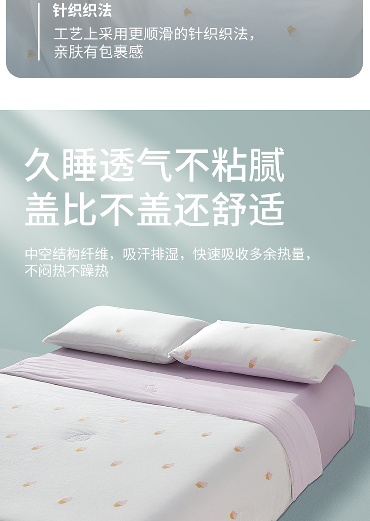 夏天的清凉感,不得不提冰淇淋,将冰淇淋的设计融入到夏被上,看着就清爽凉快。作为一默家的旗舰款热销品,去年我们给大家这款冰淇淋被,销量有401单。今年这款升级了,我们继续给大家争取了优享价。采用温凉双面设计,轻松应对温度微变化。凉感纱线经柔感处理,软滑不压身。面料吸湿排汗,能快速吸收多余热量,不闷热。