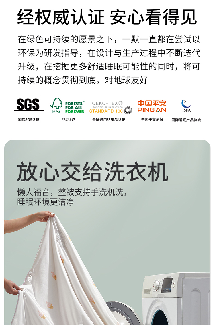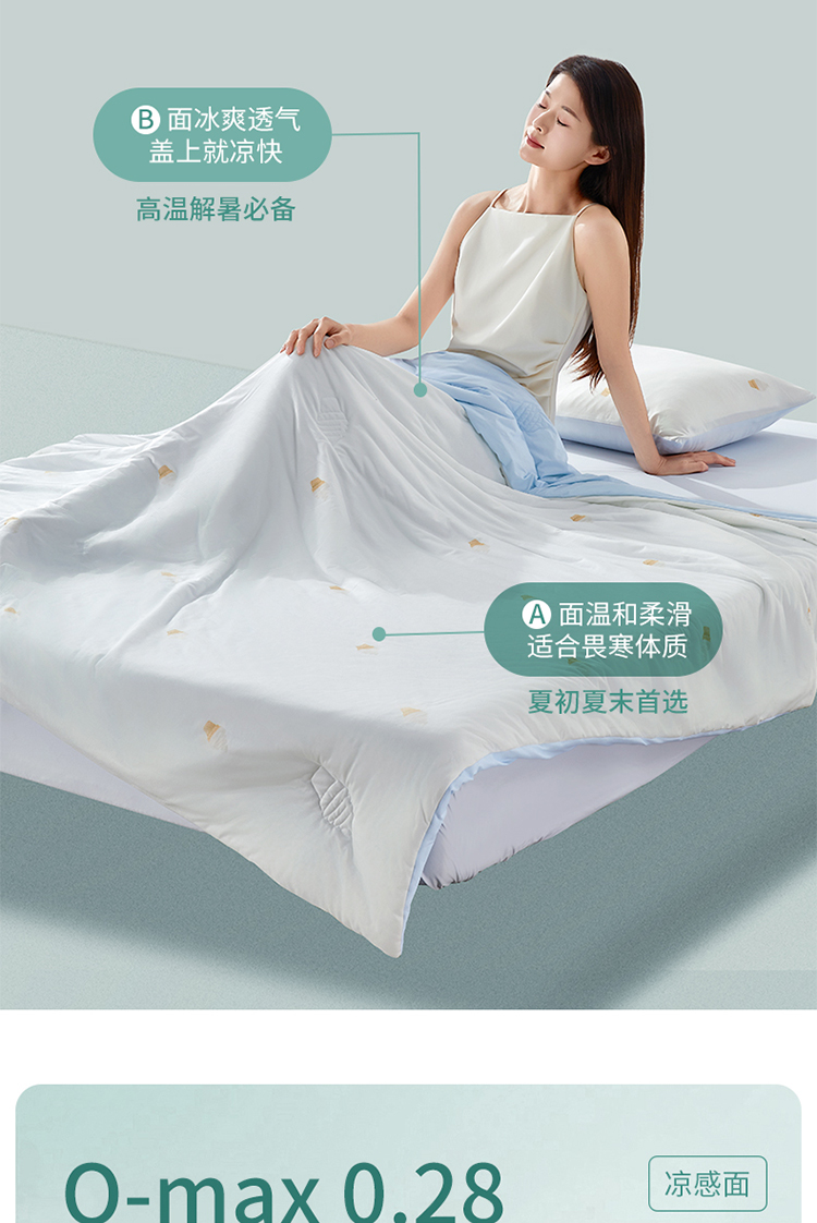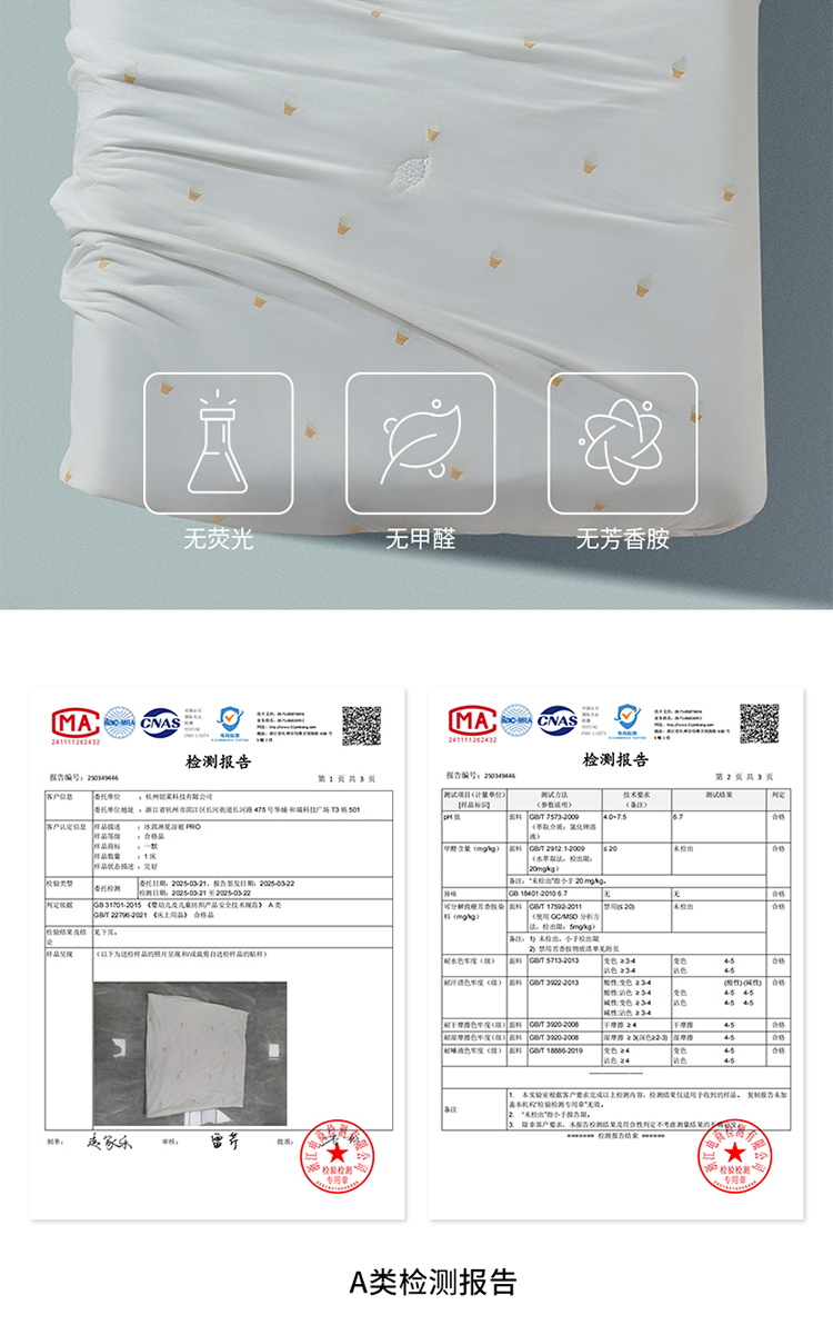 通过SGS婴儿级A类安全标准检测,0荧光、0甲醛、0人工橡胶、0掉色、0重金属。婴儿也能直接使用,裸睡放心。值得一提的是,凉感被还拥有业界出名严苛的纺织品认证——OEKO-TEX Standard 100认证。这个认证的生产商需要进行皮肤PH值、甲醛、杀虫剂、五氯苯酚、重金属、氯化有机物载体、致癌物和潜在致癌物、敏感症诱导染料以及色牢度(婴儿和初学走路孩子的产品还包括唾液和汗渍牢度)等方面的检测,才能被允许在产品上印上该标志。