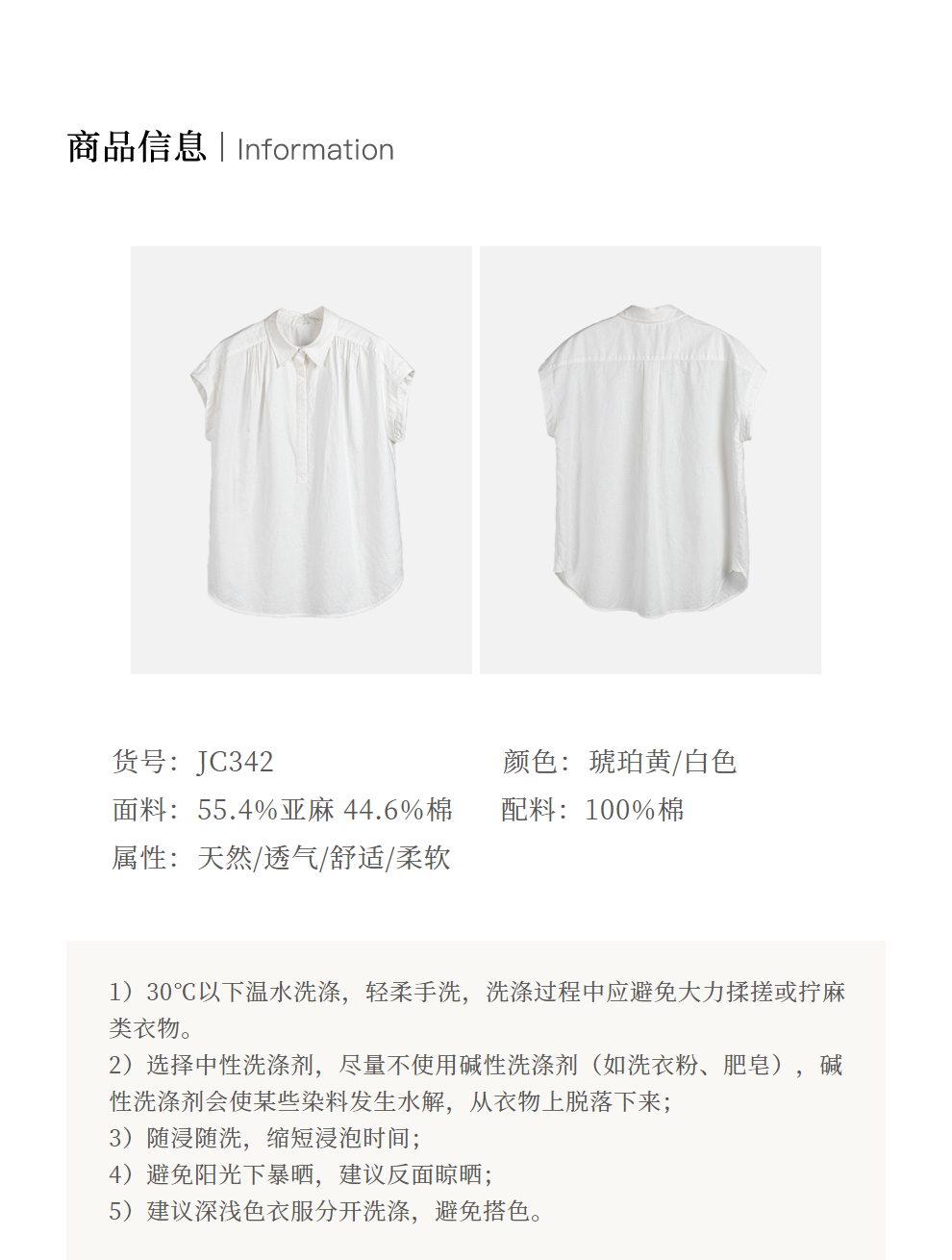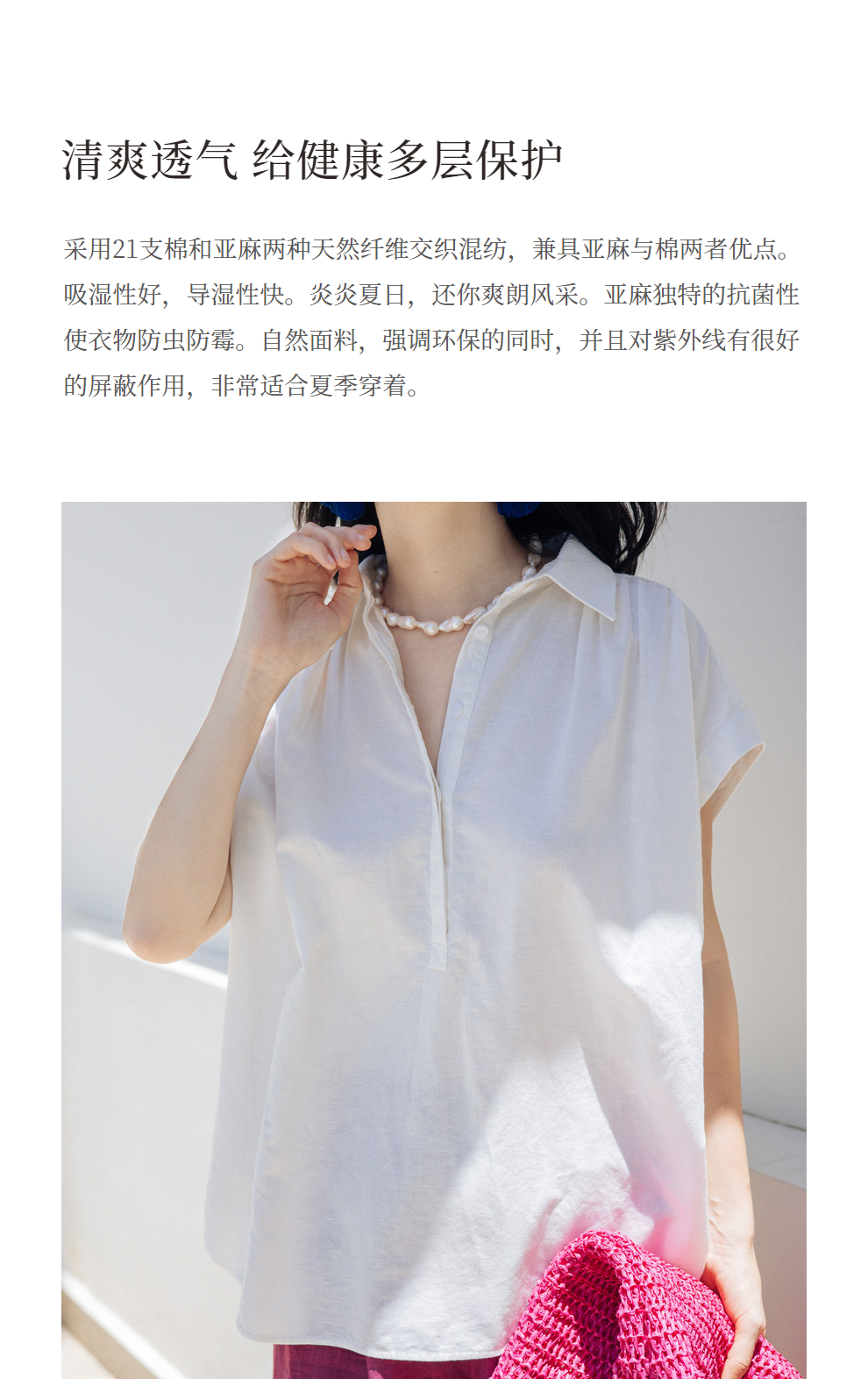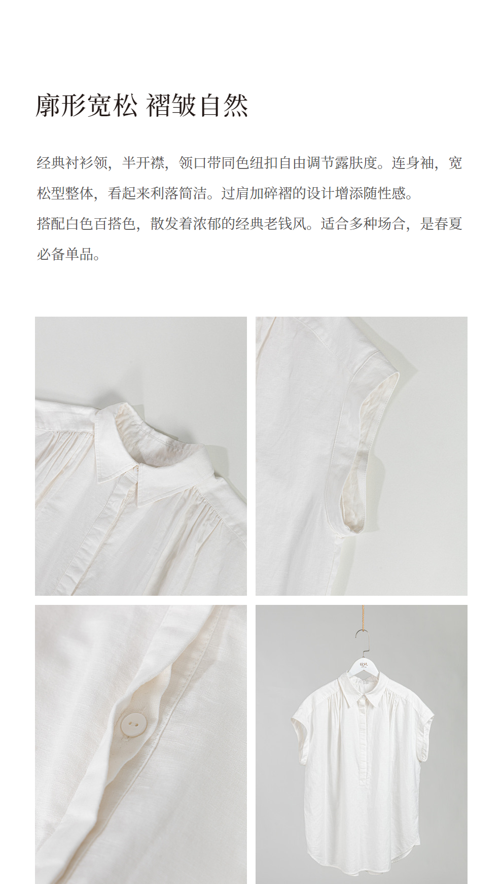 绽放旅行女装342朵/2024夏季新款白色宽松翻领连身袖棉麻衬衫