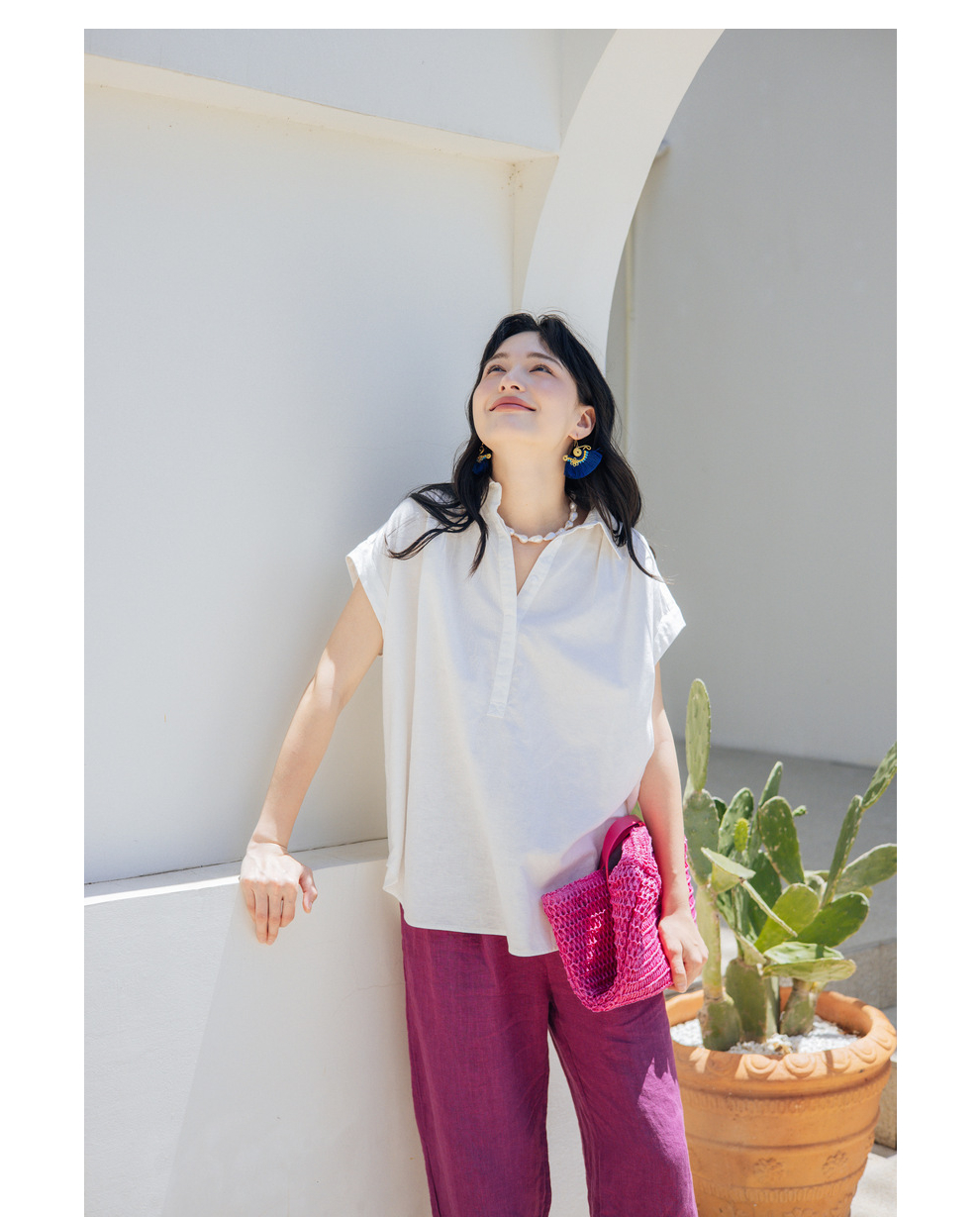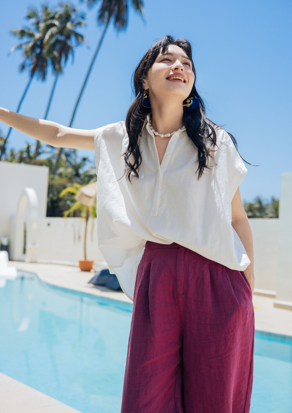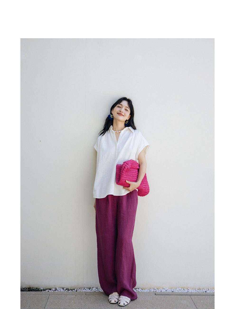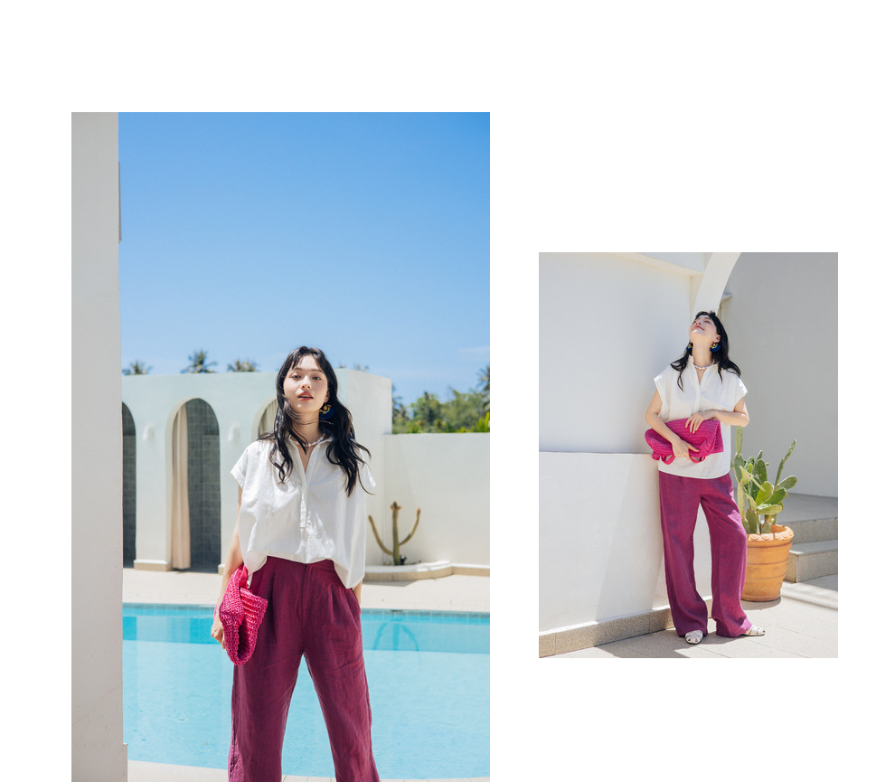以天然亚麻为载体,融合热烈色彩与自在剪裁为身在城市、心怀远方的女性提供兼具美学与舒适的旅行着装