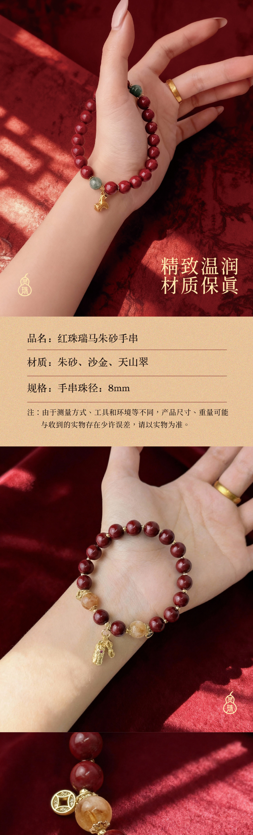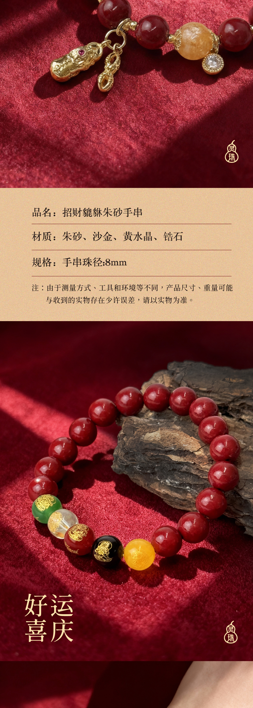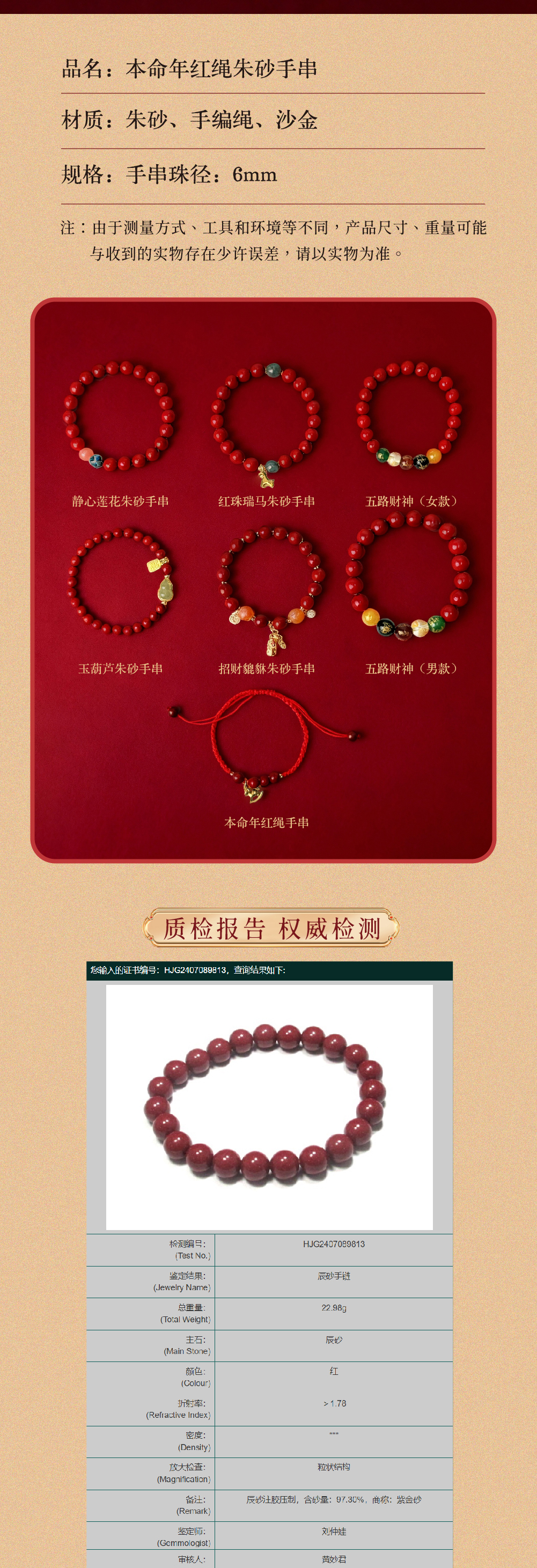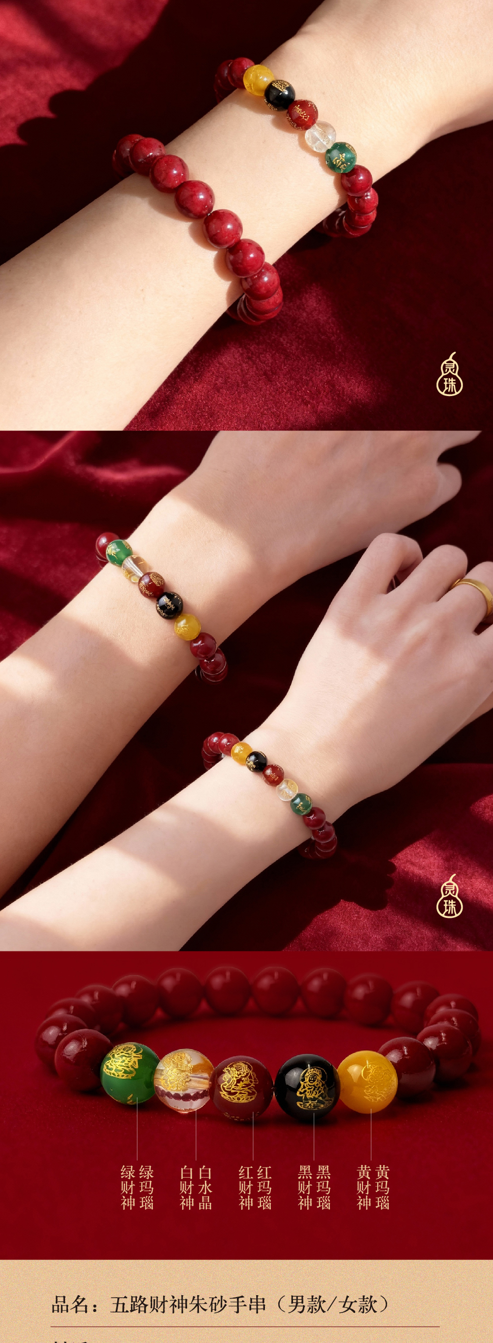 【品名】灵珠 朱砂手串 颗颗饱满 手感细腻光滑 多款可选 【规格】五路财神(女款)、招财貔貅朱砂手串、红珠瑞马朱砂手串、静心莲花朱砂手串、玉葫芦朱砂手串、五路财神(男款)、本命年红绳手串 【产地】国内 【发货包装】独立包装 【发货地】河南 【发货快递】中通 【不发货区域】新疆、西藏、港澳台 【发货时效】48-72小时,周末节假日顺延 |