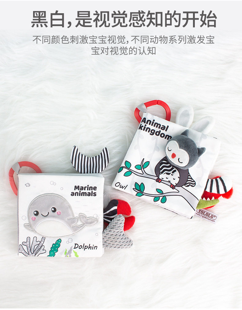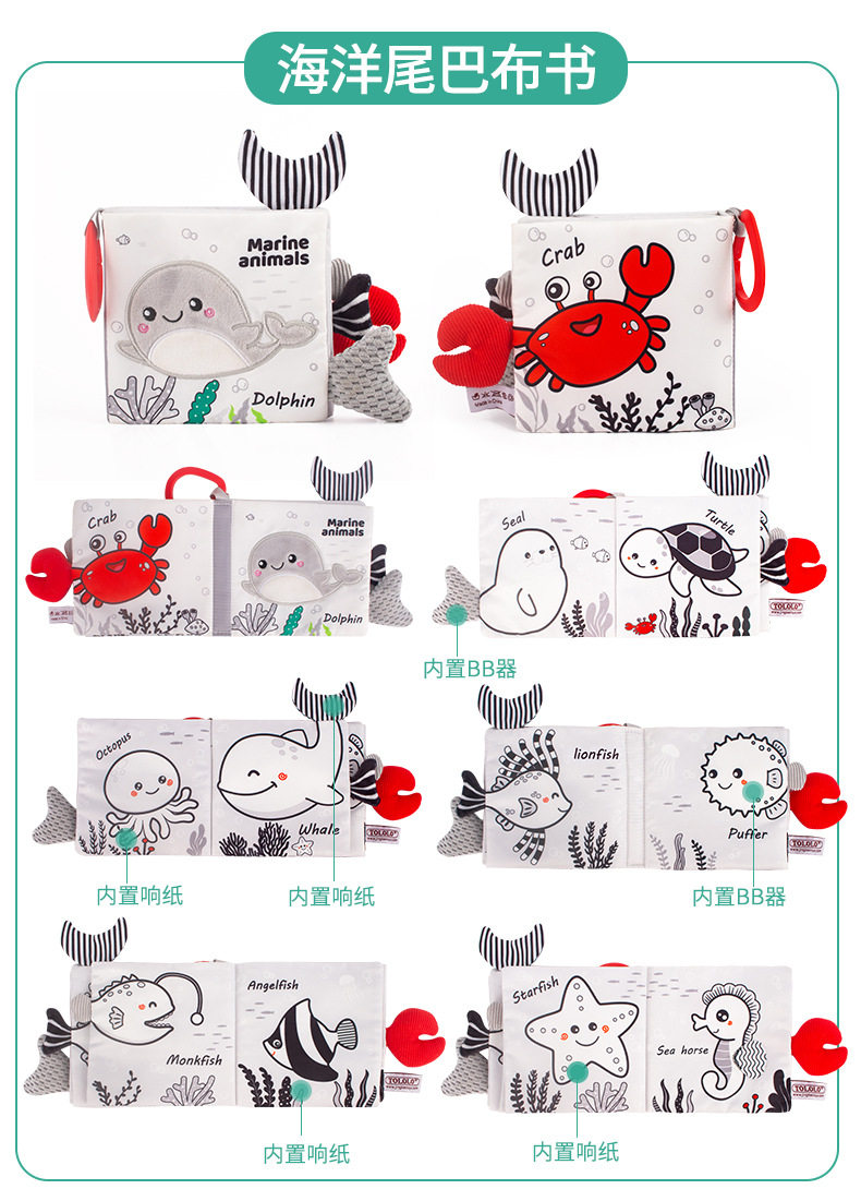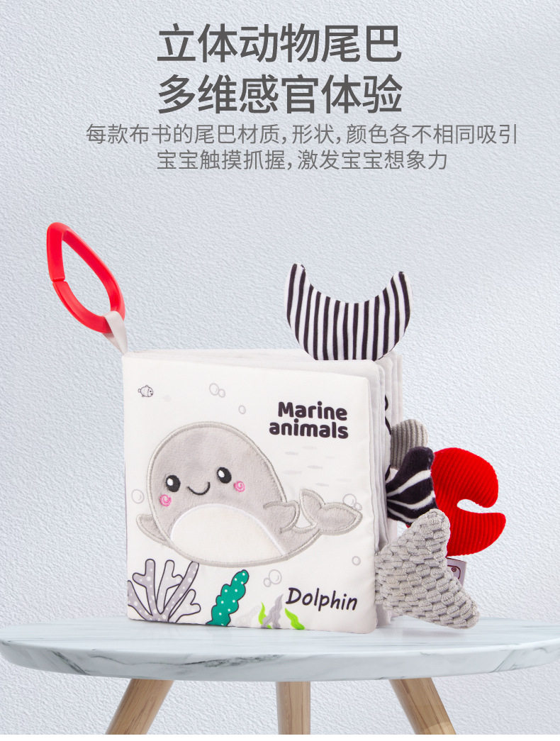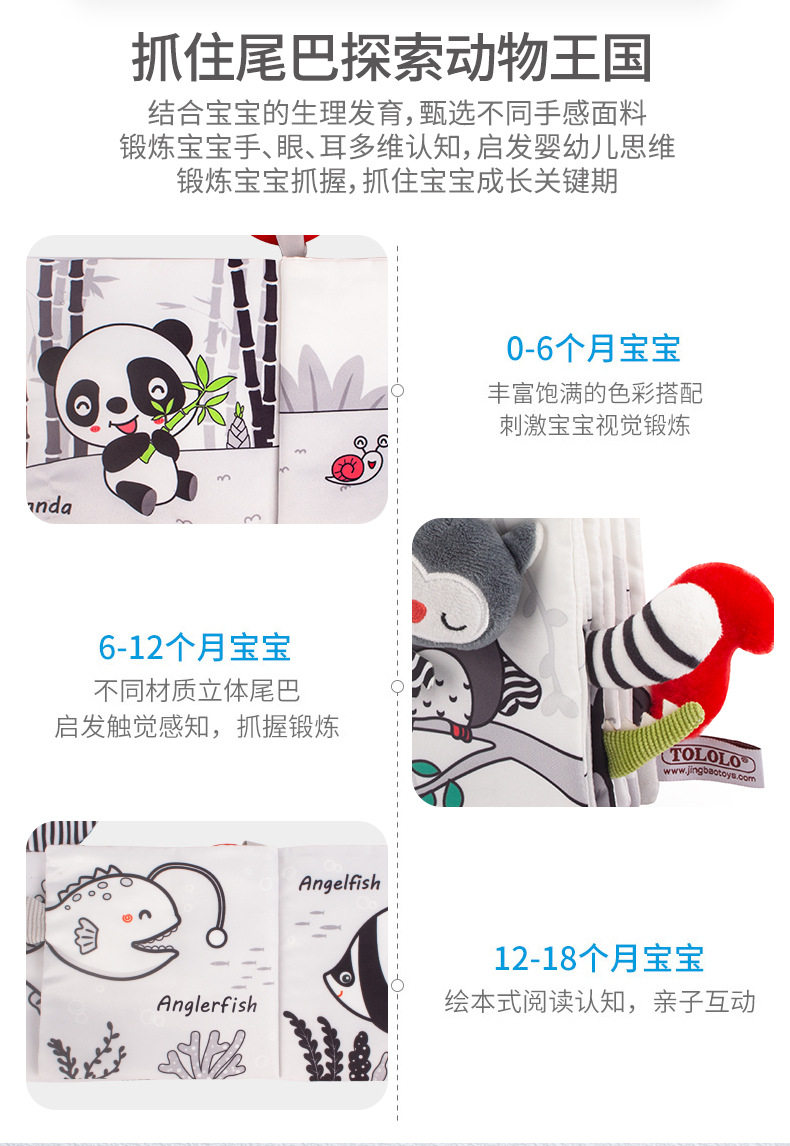 Happy monkey 黑白尾巴布书婴儿撕不烂视觉训练宝宝早教益智布书