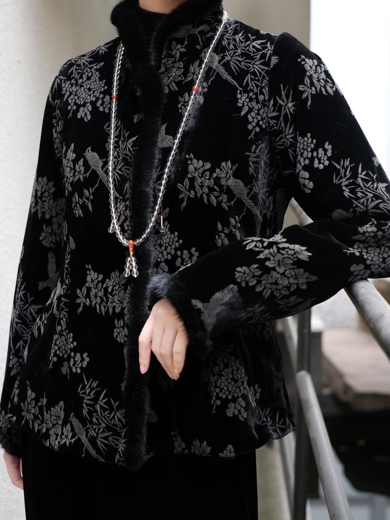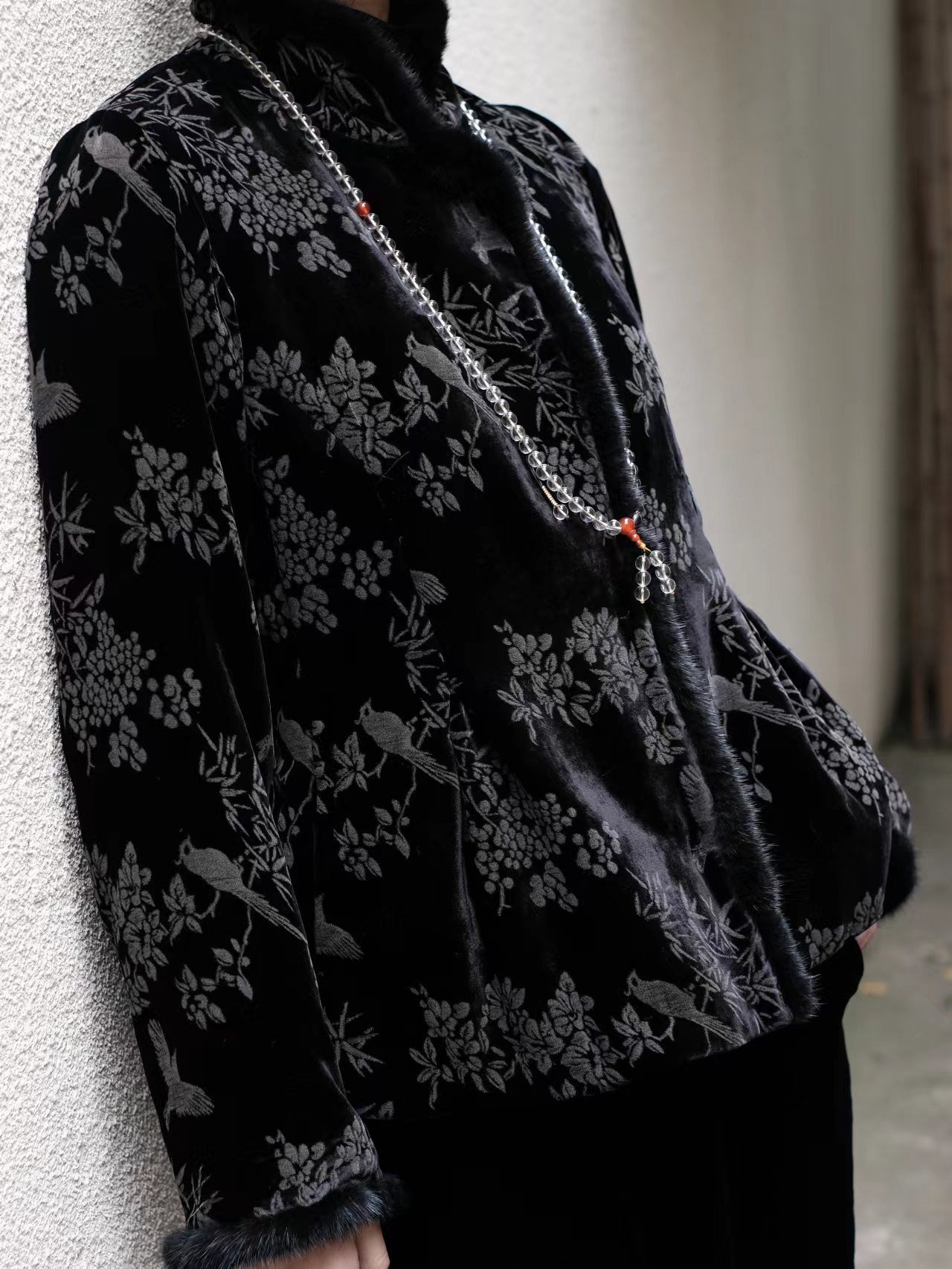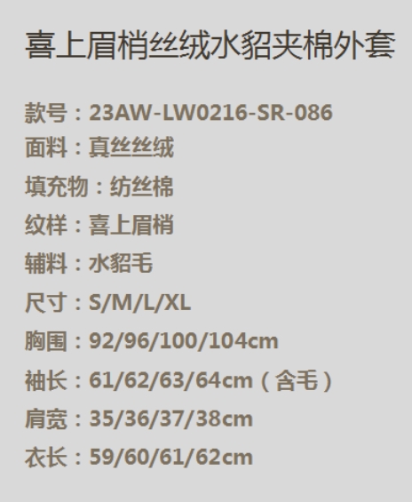 盛唐牡丹 |喜上眉梢丝绒水貂夹棉外套