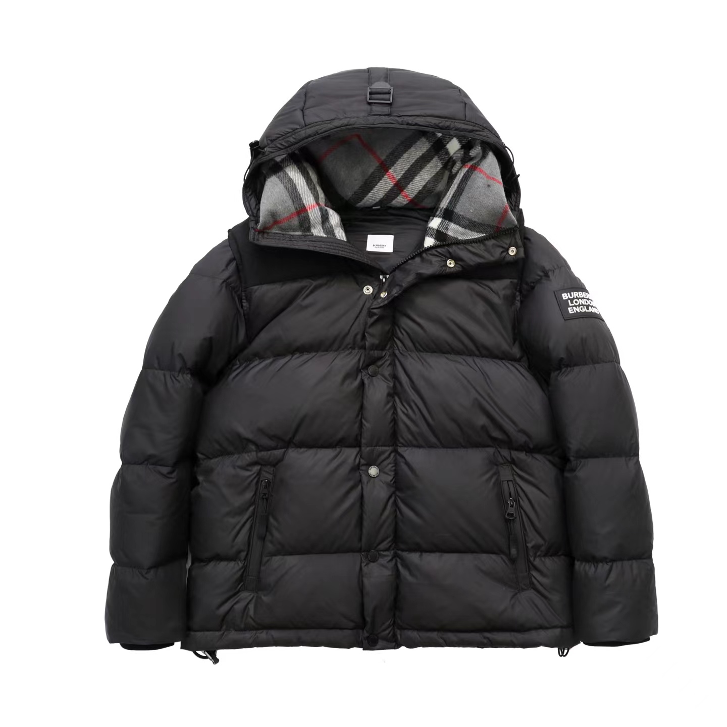 秋冬新款可拆式衣袖连帽羽绒服周冬雨同款 可拆卸,当马甲,一衣两穿,领口格子边为羊绒制品柔和亲肤丝滑,内里填充正品一致进口波兰专用90%白鸭绒,轻薄、手感细腻、柔软、不易变形、不会透丝,广泛运用于滑雪衫、防寒服,锁温保暖,大朵绒羽毛填充,每件羽绒服充绒量高达国标580克,按压下去立马回弹,具有很好的蓬松度,穿在身上没有压迫感,修身的版型显瘦拒绝臃肿