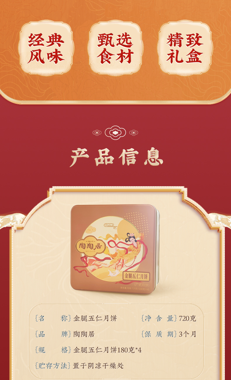 【买1盒送1盒陶陶星享月饼】陶陶居金腿五仁月饼720g,下单即赠送陶陶星享月饼300g一盒