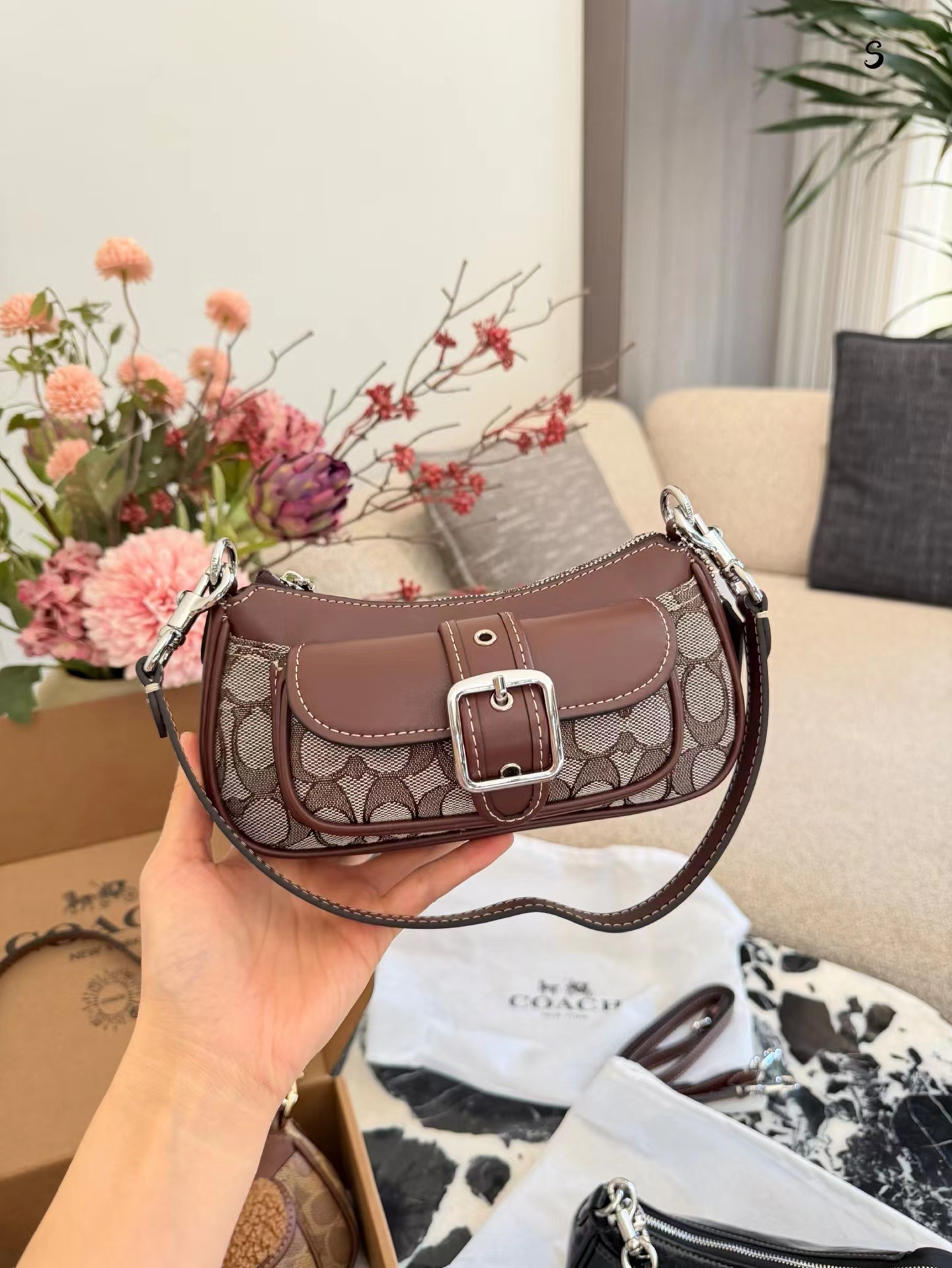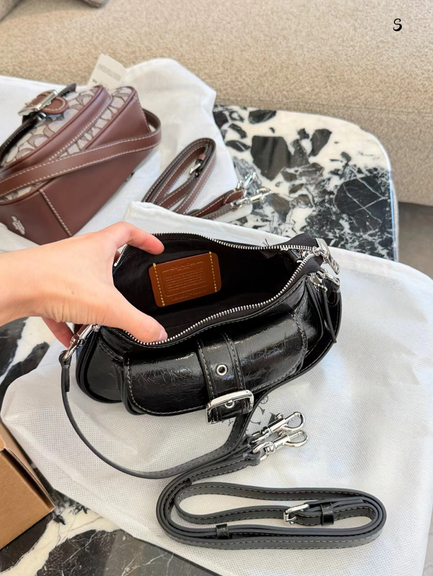 腋下包 法棍包 19厘米的底边长度精巧实用,轻松容纳日常b备。可调节的棕色皮革肩带,让你能在优雅的单肩背与休闲的斜挎背法之间自由切换,适配多种场合。无论是搭配冬日大衣还是休闲针织衫,都能瞬间提升造型的质感与趣味。这个冬季,让这款兼具jing典基因与可爱玩趣的Ashton小包,成为您穿搭中不可或缺的暖心亮点。