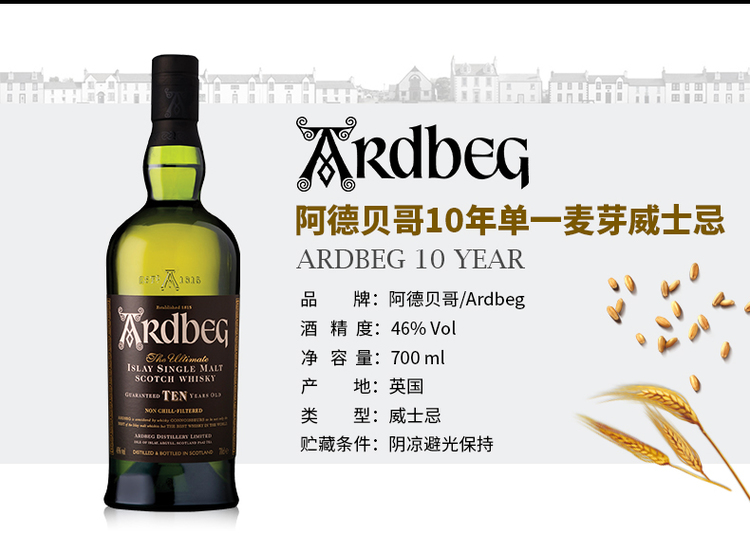 【行货】阿贝雅伯十年 艾雷岛单一麦芽苏格兰威士忌