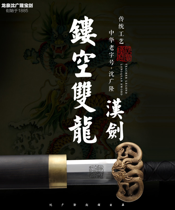 双龙汉剑 八面汉剑 花纹钢剑 龙泉沈广隆宝剑 传统收藏剑 工艺品 未开刃
