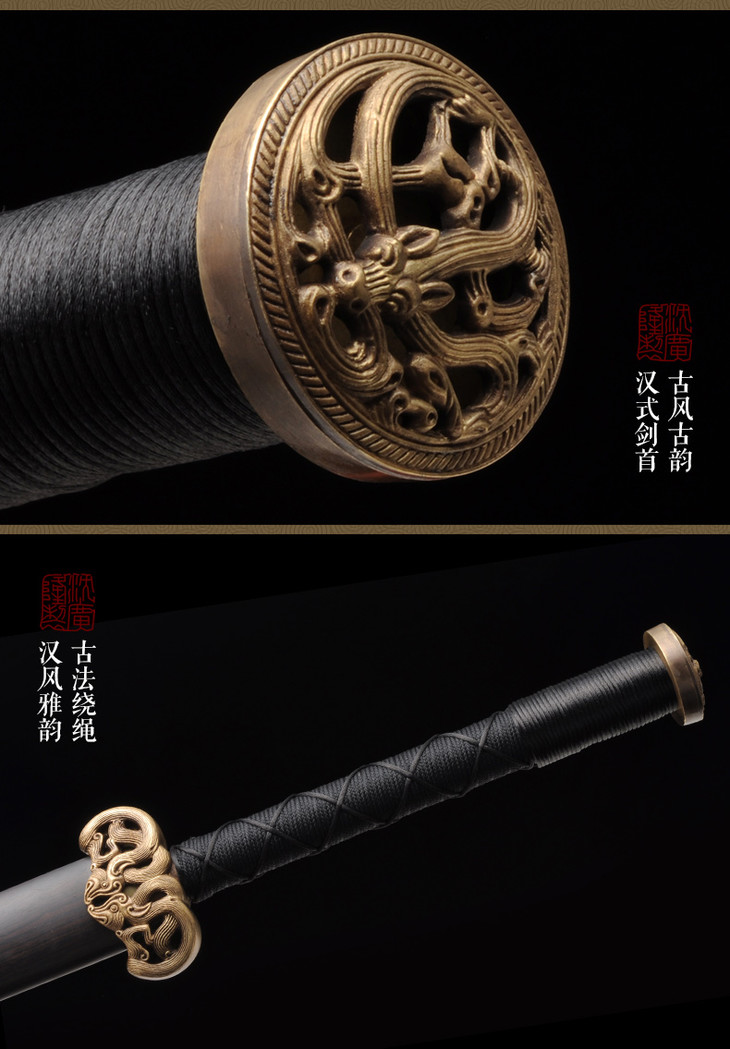 秦皇剑 汉唐横剑冷兵器一体刀剑 花纹钢 龙泉沈广隆宝剑 未开刃