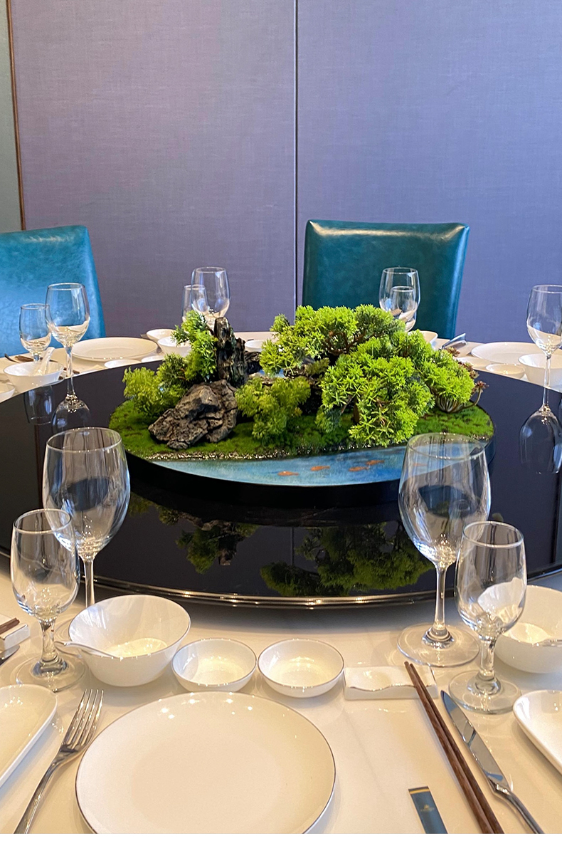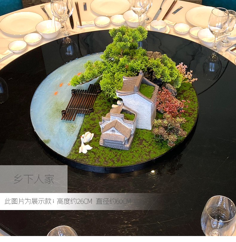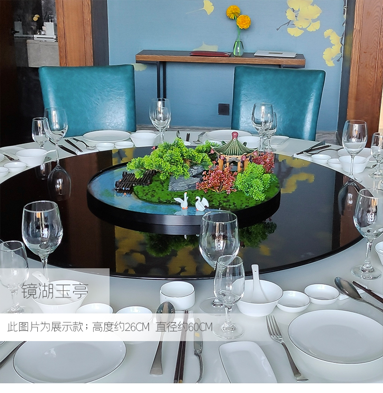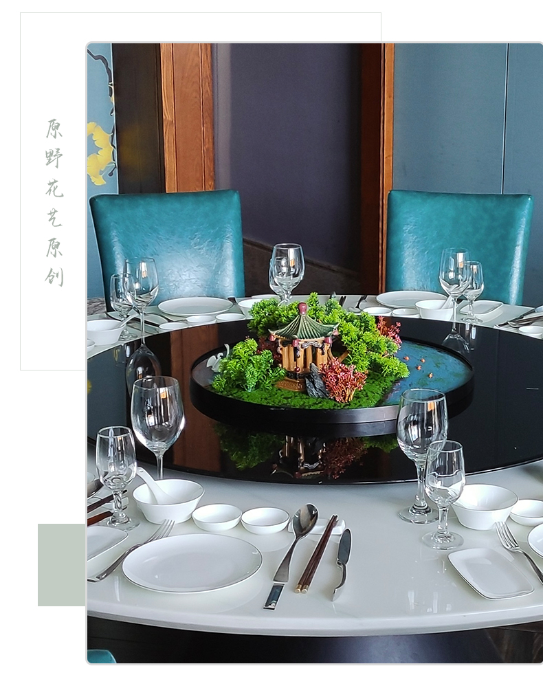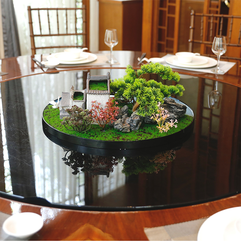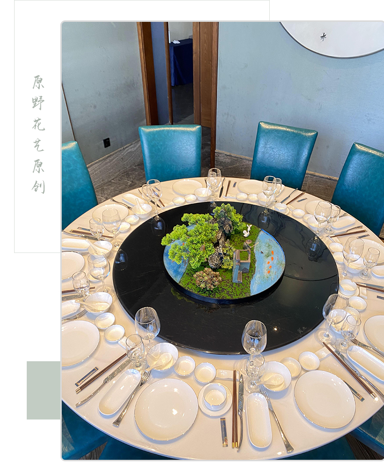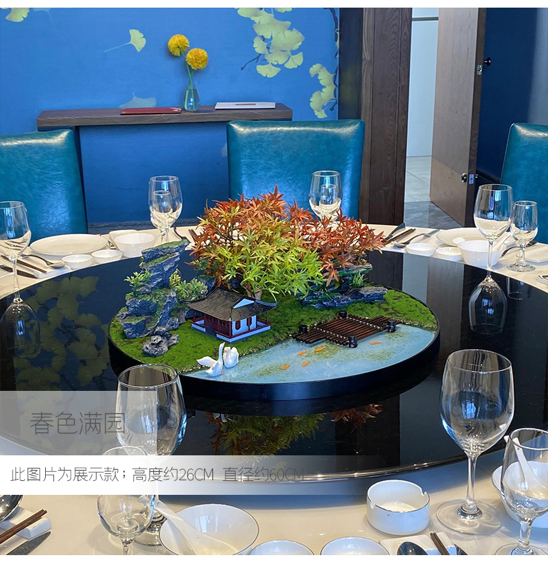 酒店餐桌花摆花新中式大圆桌装饰摆件创意中间转盘造景微景观