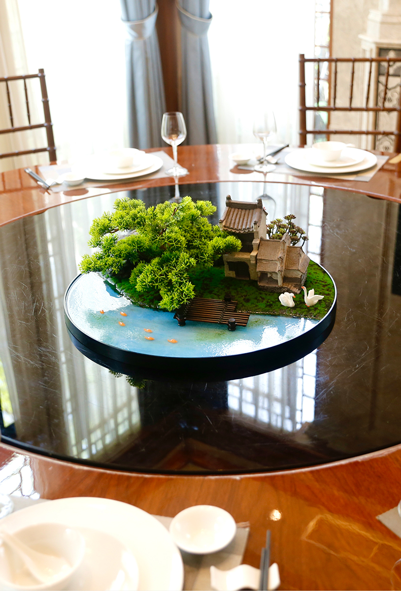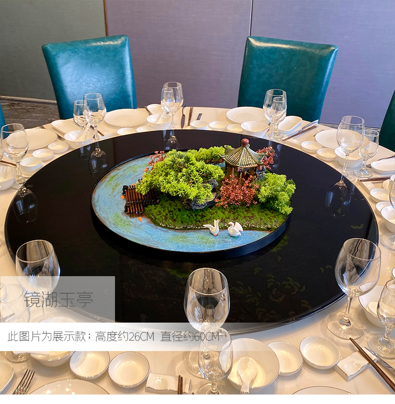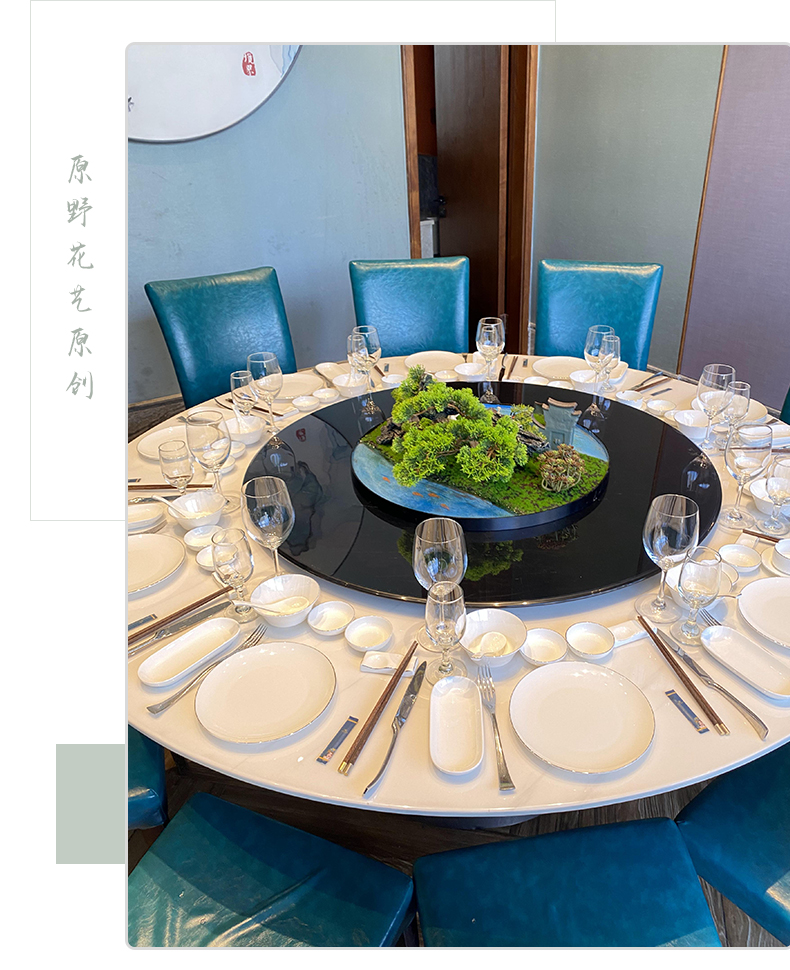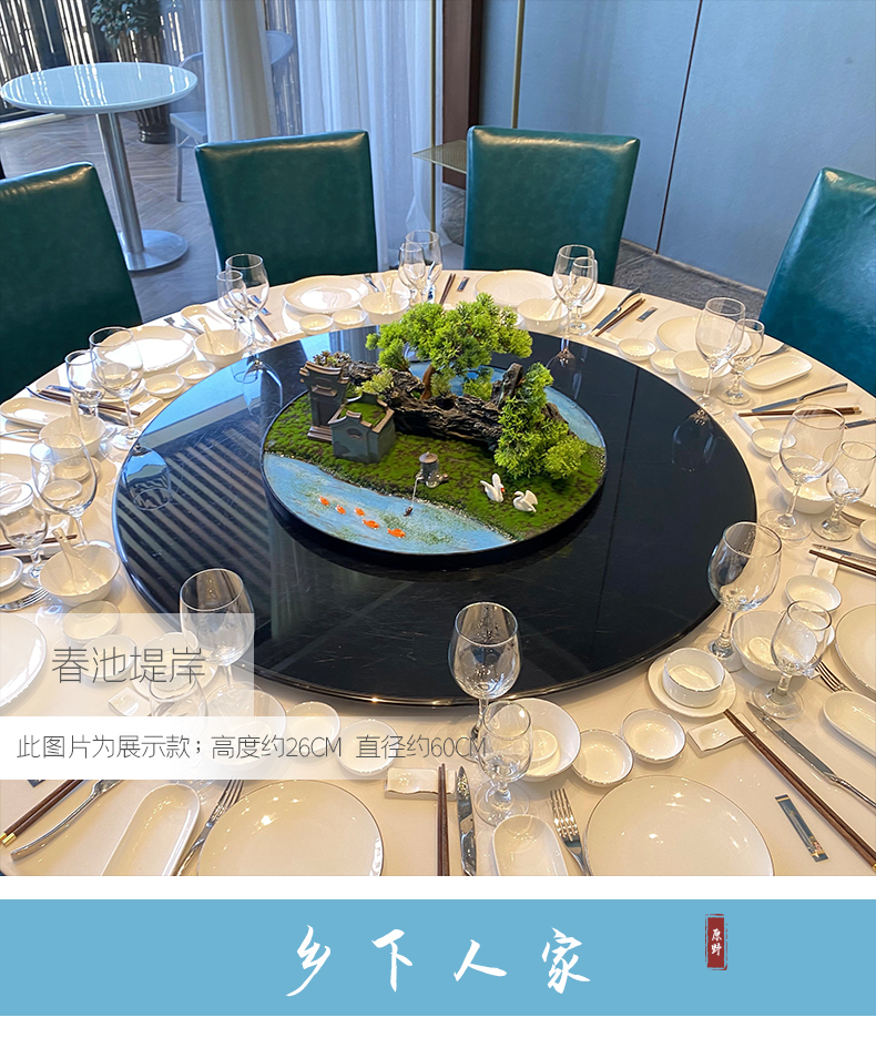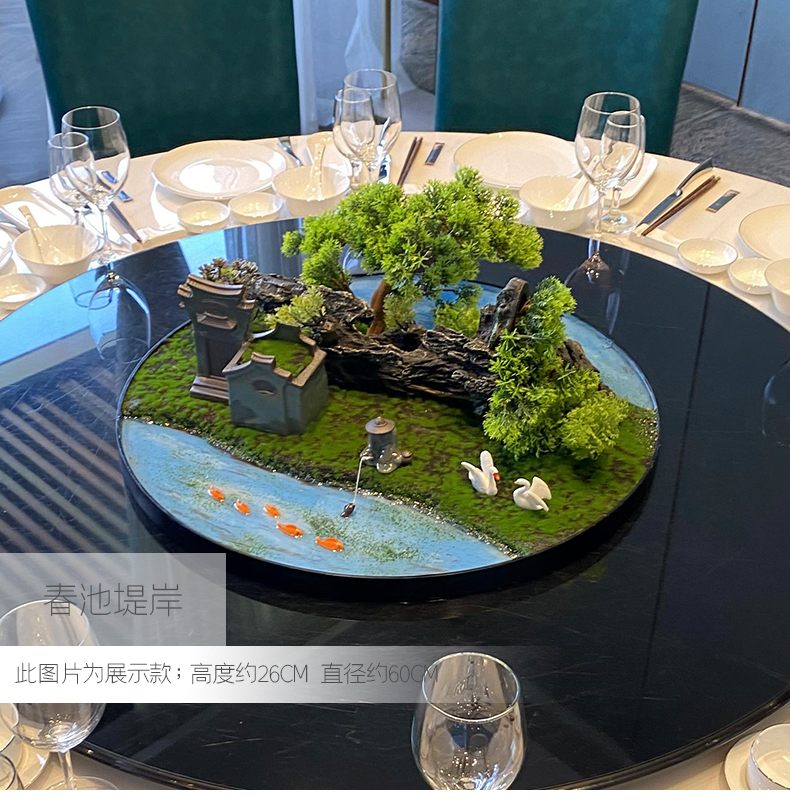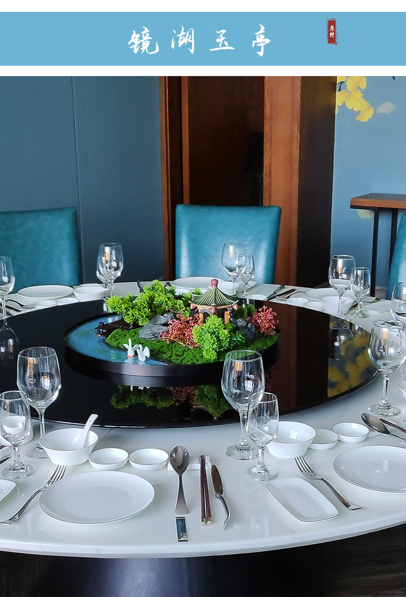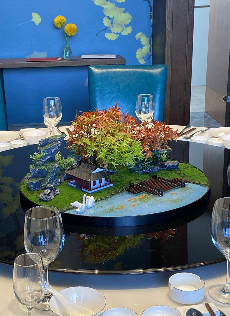 酒店餐桌花摆花新中式大圆桌装饰摆件创意中间转盘造景微景观