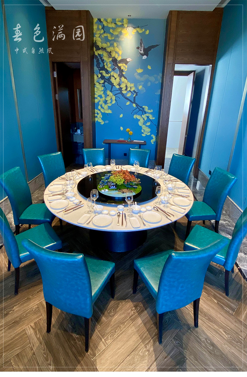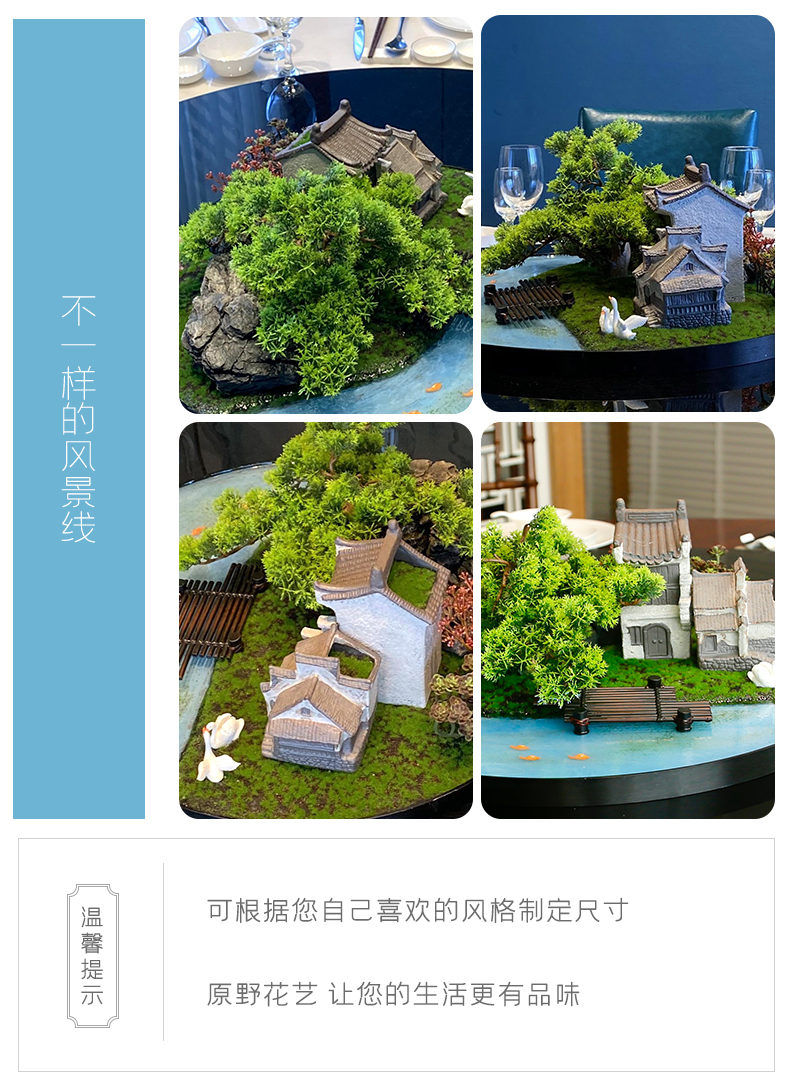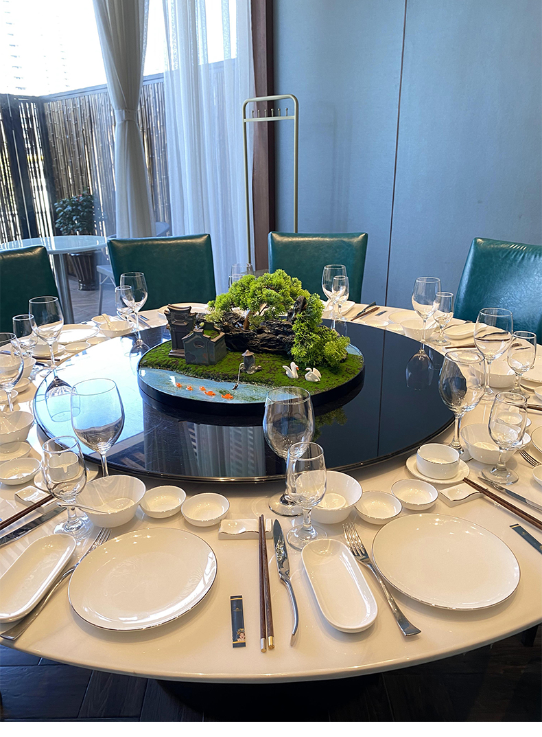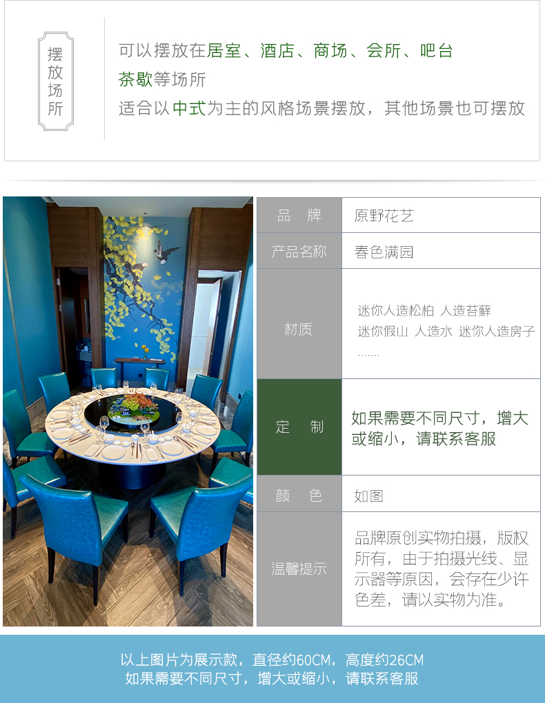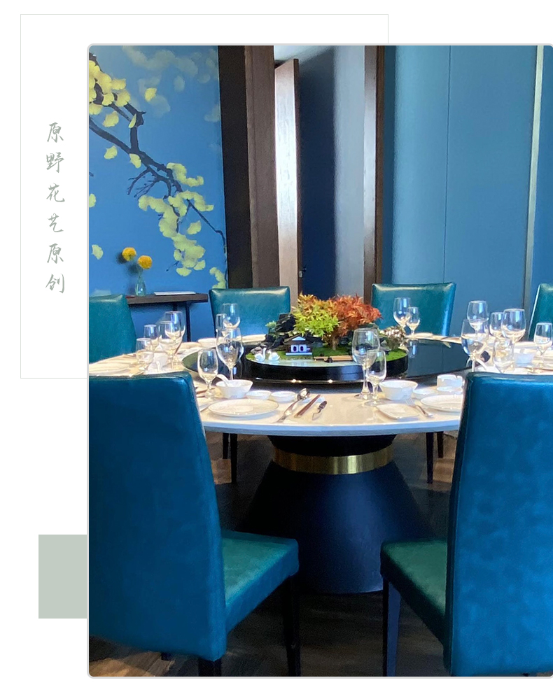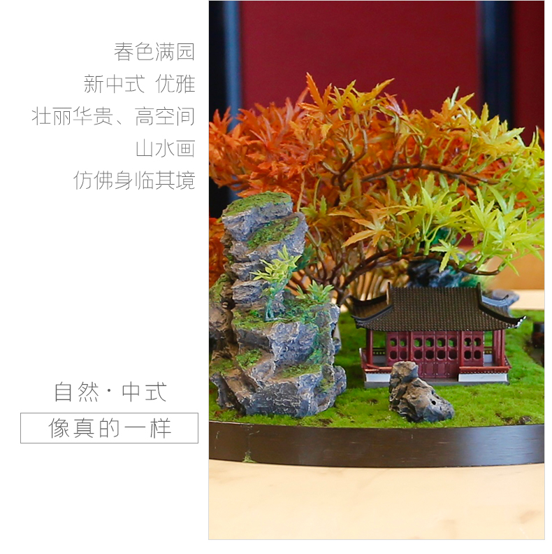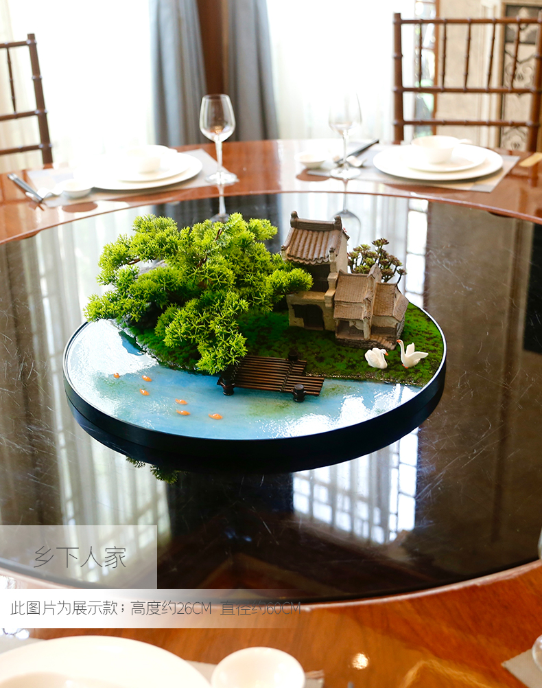 酒店餐桌花摆花新中式大圆桌装饰摆件创意中间转盘造景微景观