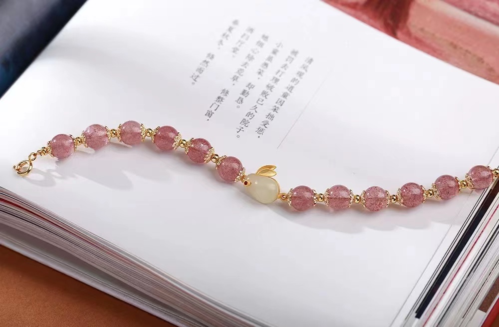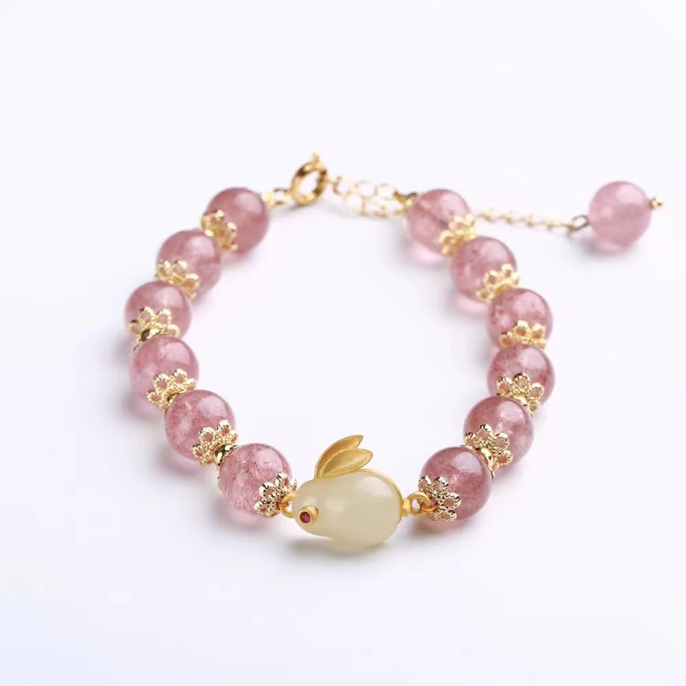 2023年是兔年,草莓晶搭配玉兔制成手链,不仅美观,寓意也十分美好!
