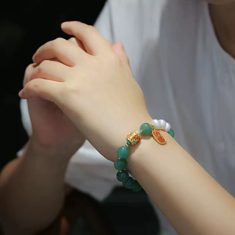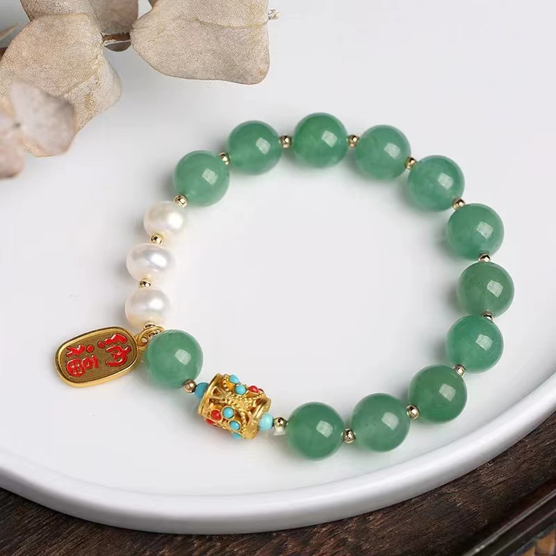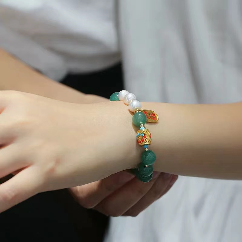 材质:东陵玉 淡水珍珠 铜镀金 古法金配饰 14k包金小金珠
