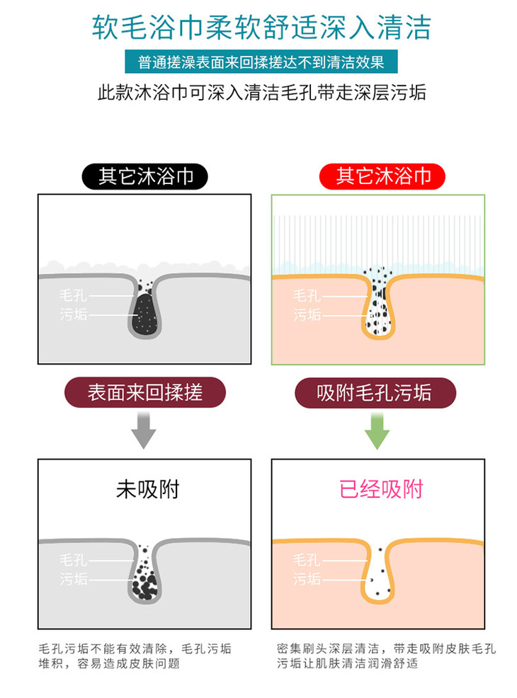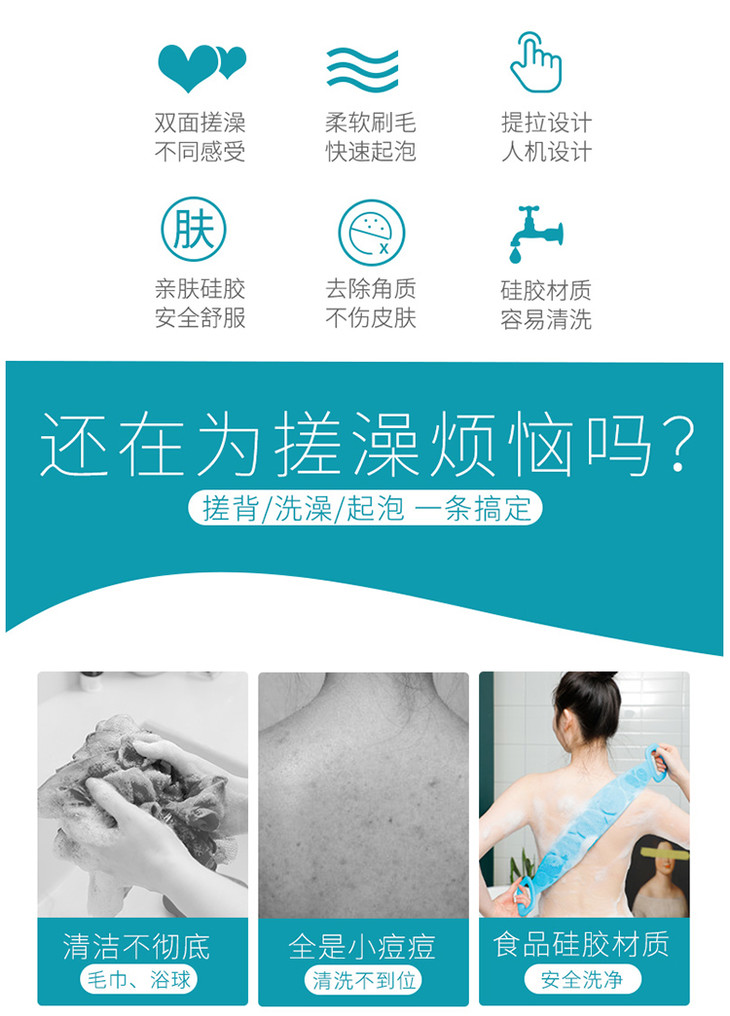 硅胶搓澡巾,搓澡不求人!】上千根硅胶刷毛,深入清洁老废角质,温和不伤肤,去暗沉、鸡皮、后背痘痘,皮肤又白又嫩!