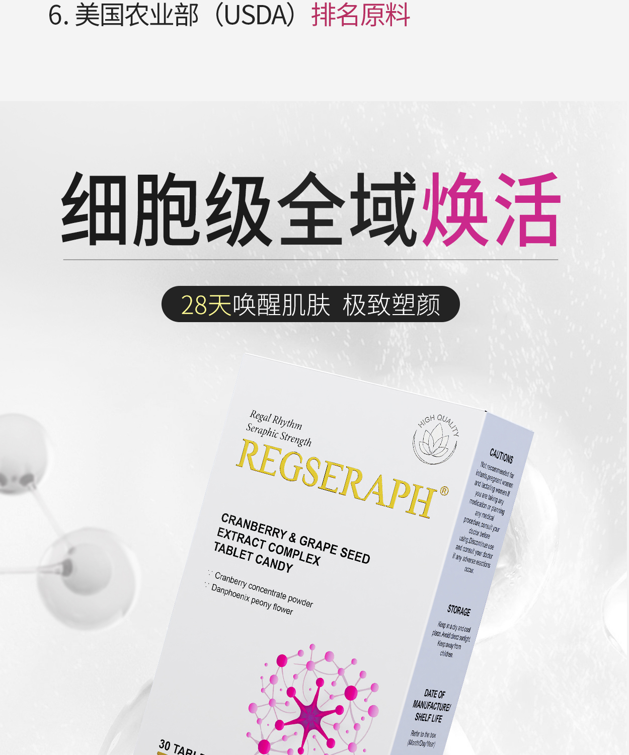 REGSERAPH加拿大进口葡萄籽亮白花青素阻氧化断暗沉激胶原