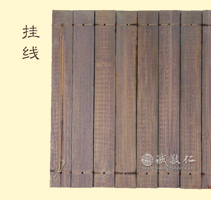 1、竹简两端的竹片背面有绳子,可直接挂在墙上的钉子或者挂钩上;