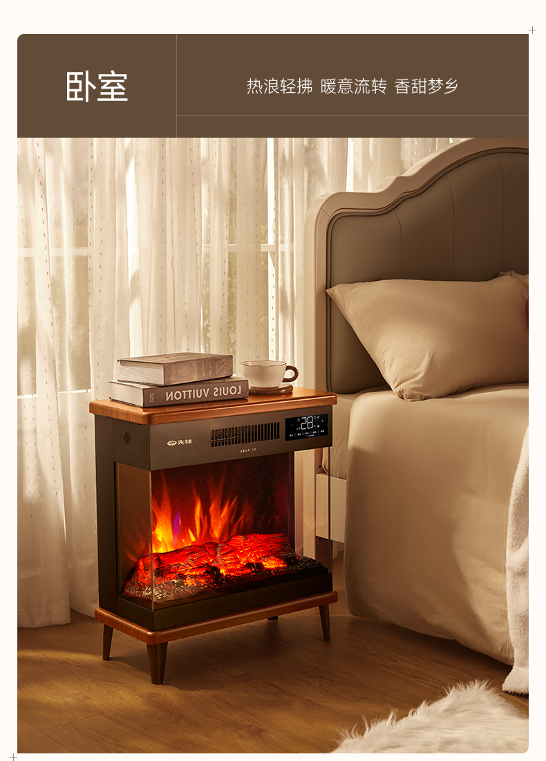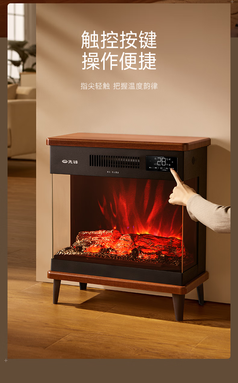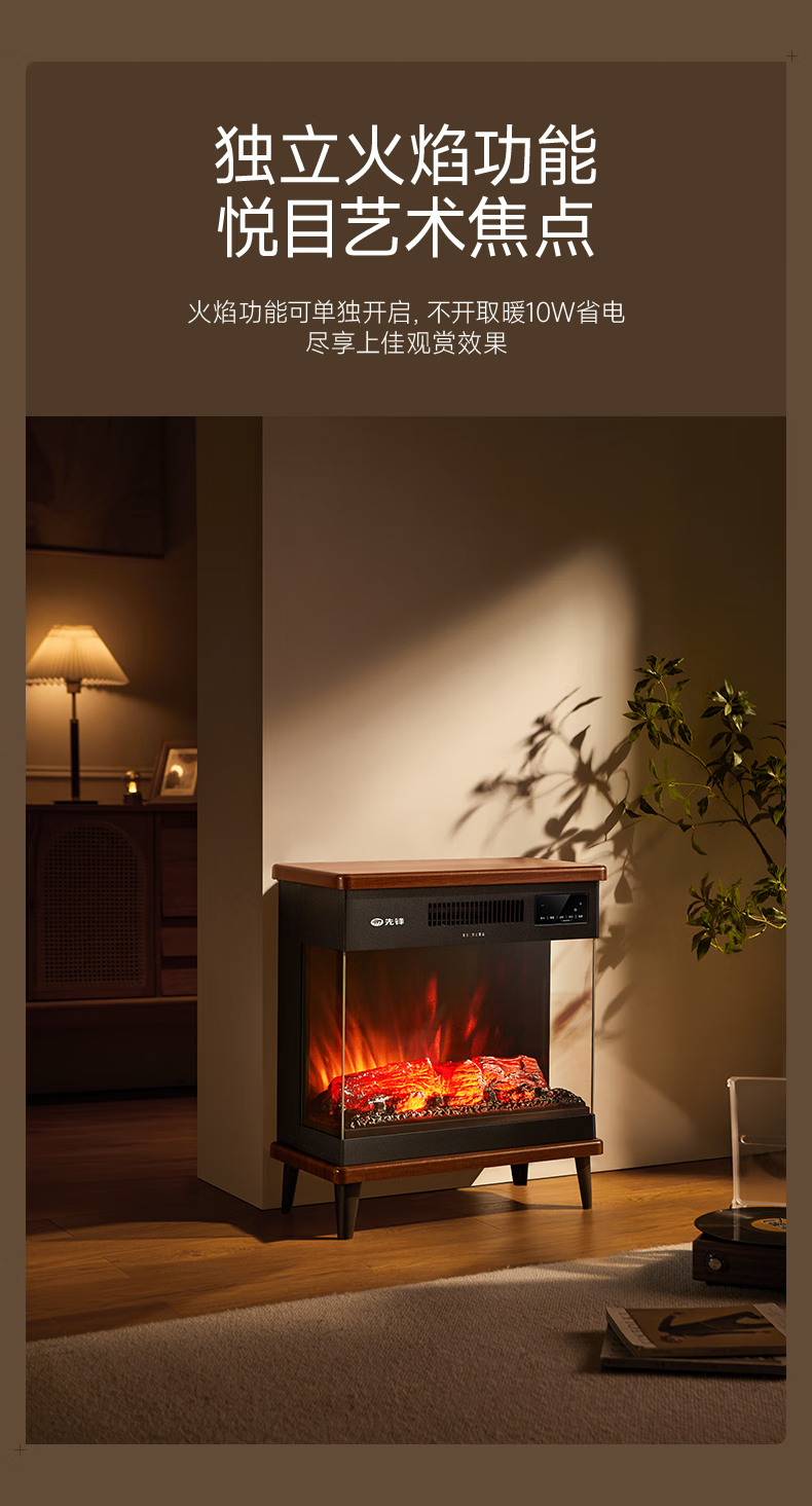 先锋(SINGFUN)石墨烯取暖器台地两用电暖器家用暖风机壁炉 LED数显屏离线语音木纹质感DBL-GY1R