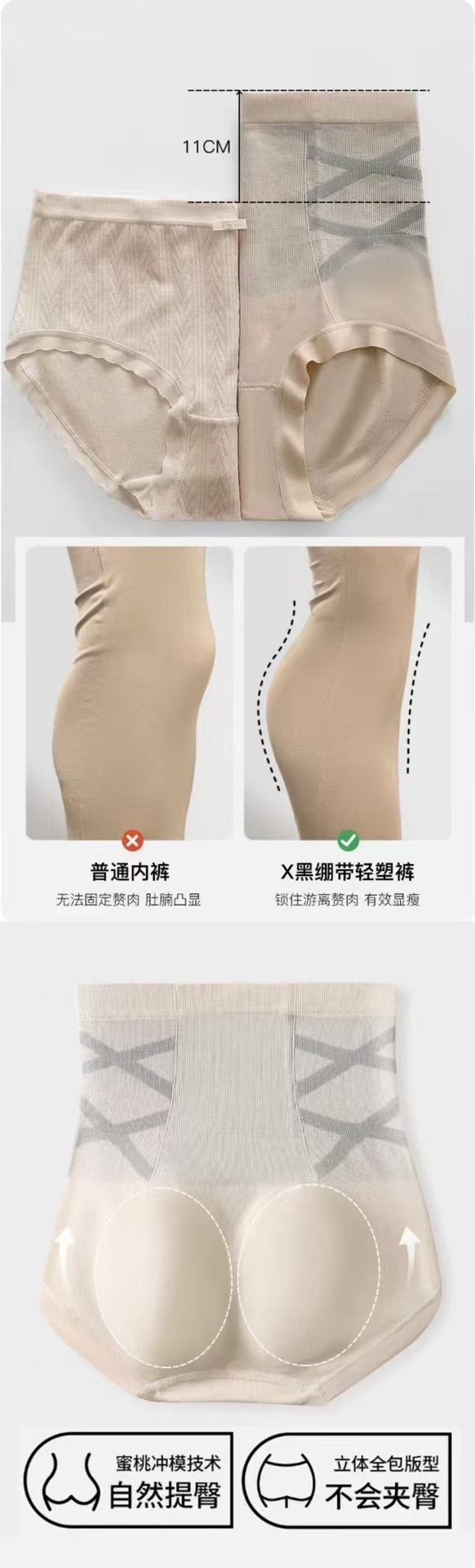 ✅高腰收腹!人性化版型分段施压设计