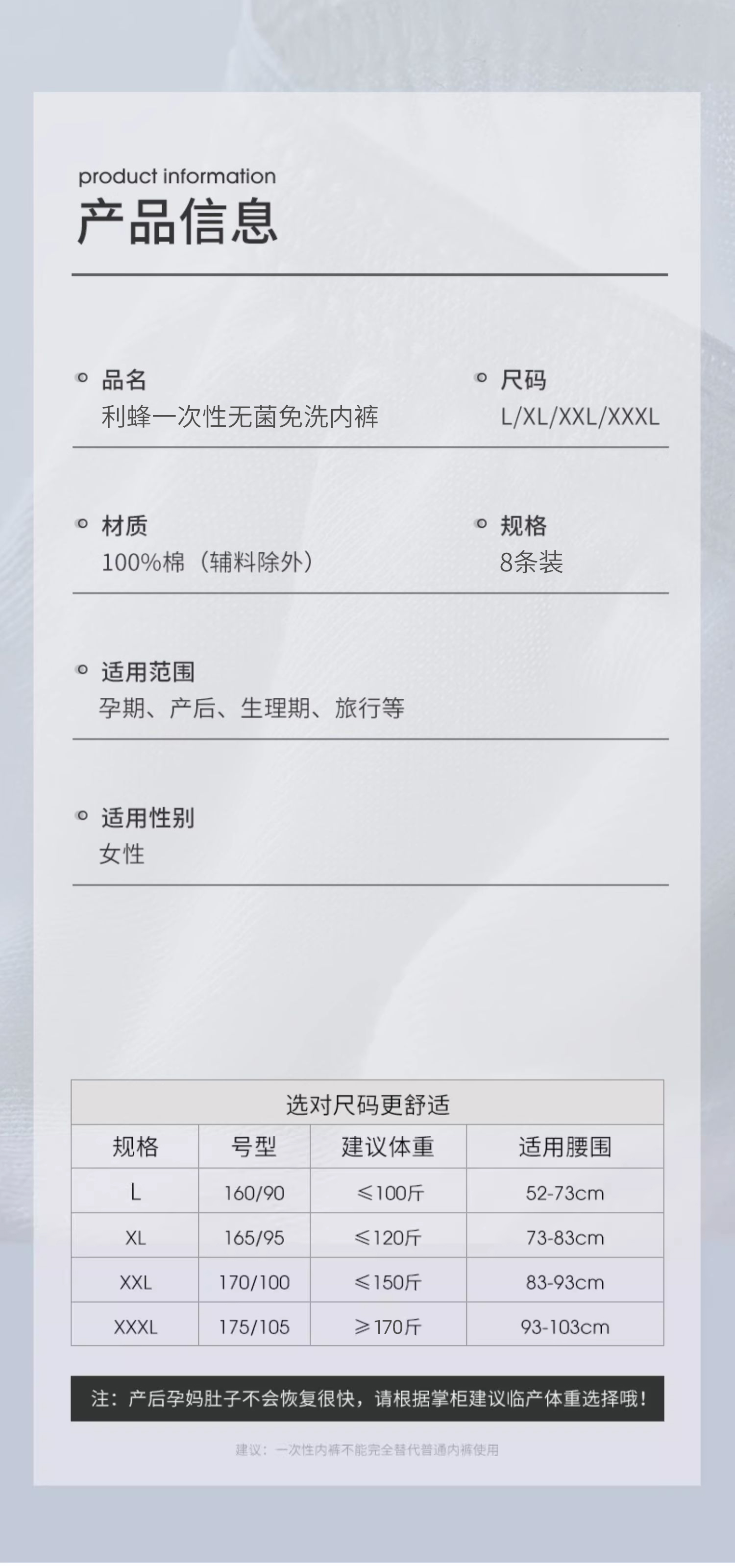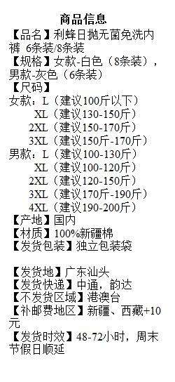 利蜂日抛无菌免洗内裤 6条装/8条装