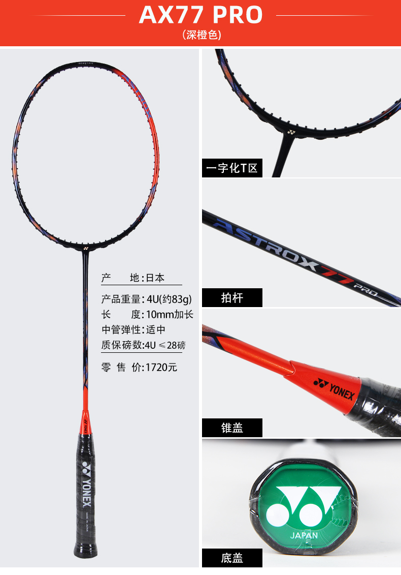 【空拍不穿线】YONEX尤尼克斯羽毛球拍 碳素纤维天斧AX77pro 天斧77PRO 暴力扣杀