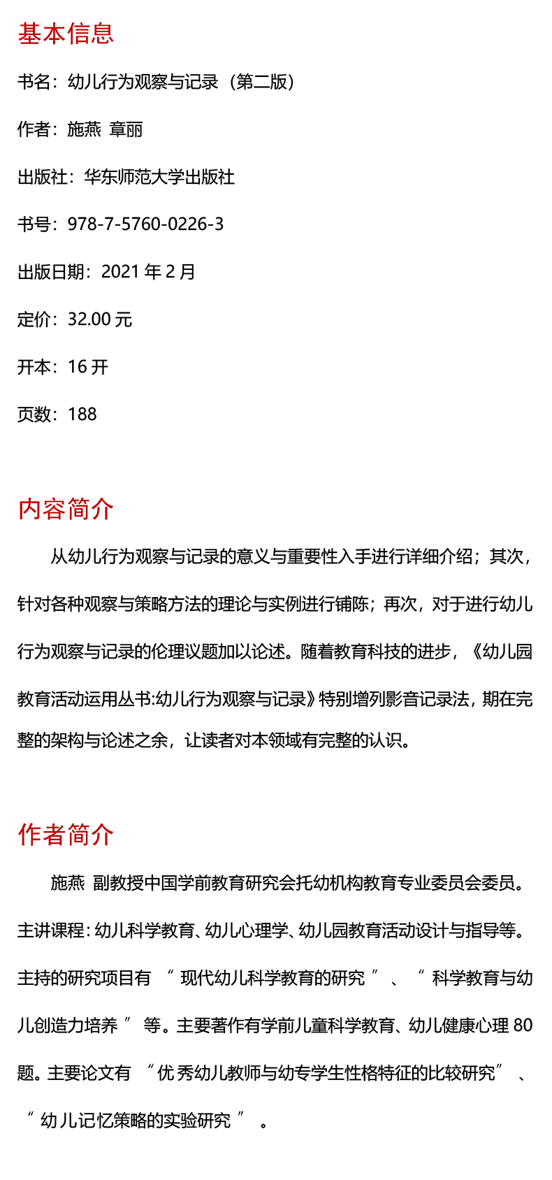 幼儿行为观察与记录 第二版 微课版 新标准学前教育专业系列教材 施燕 章丽著