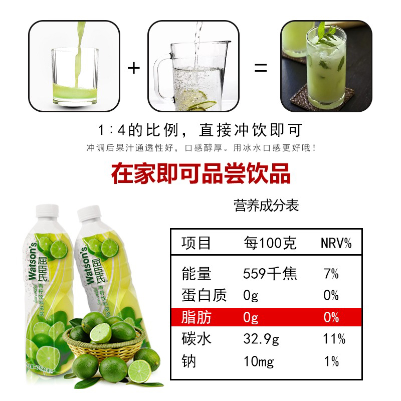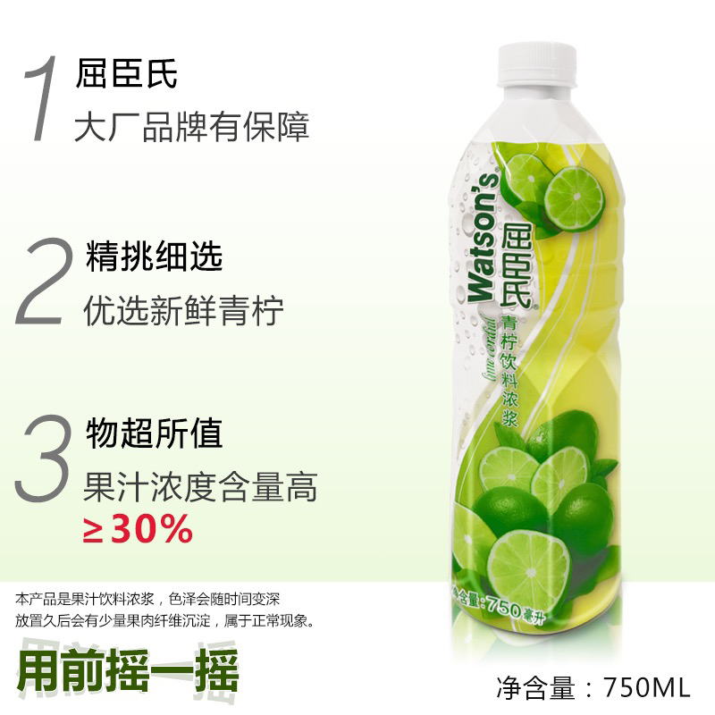 屈臣氏青柠水750ml果汁柠檬水调鸡尾酒饮料