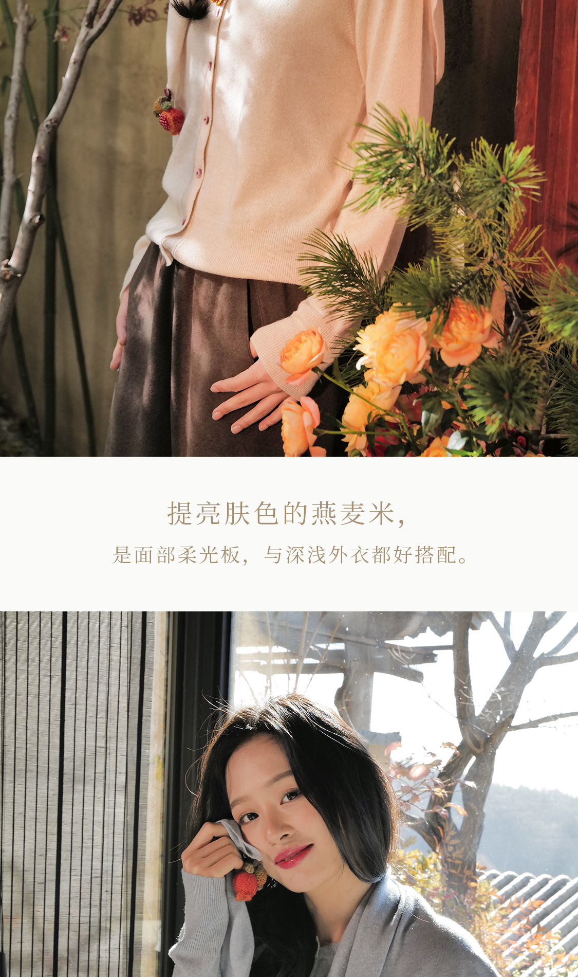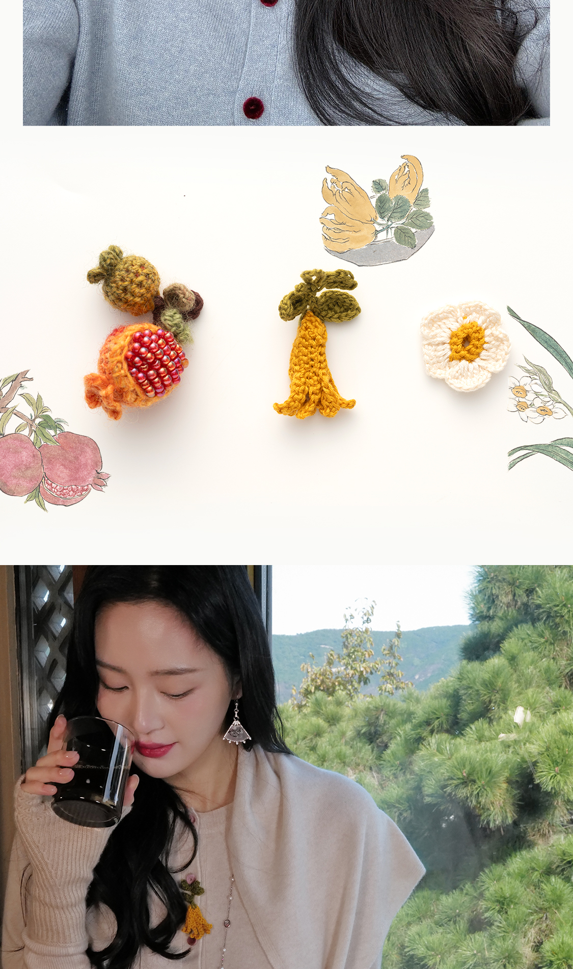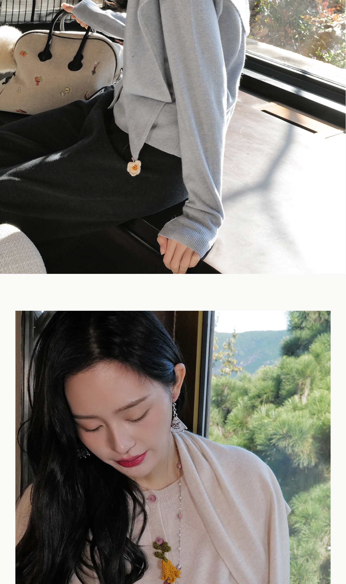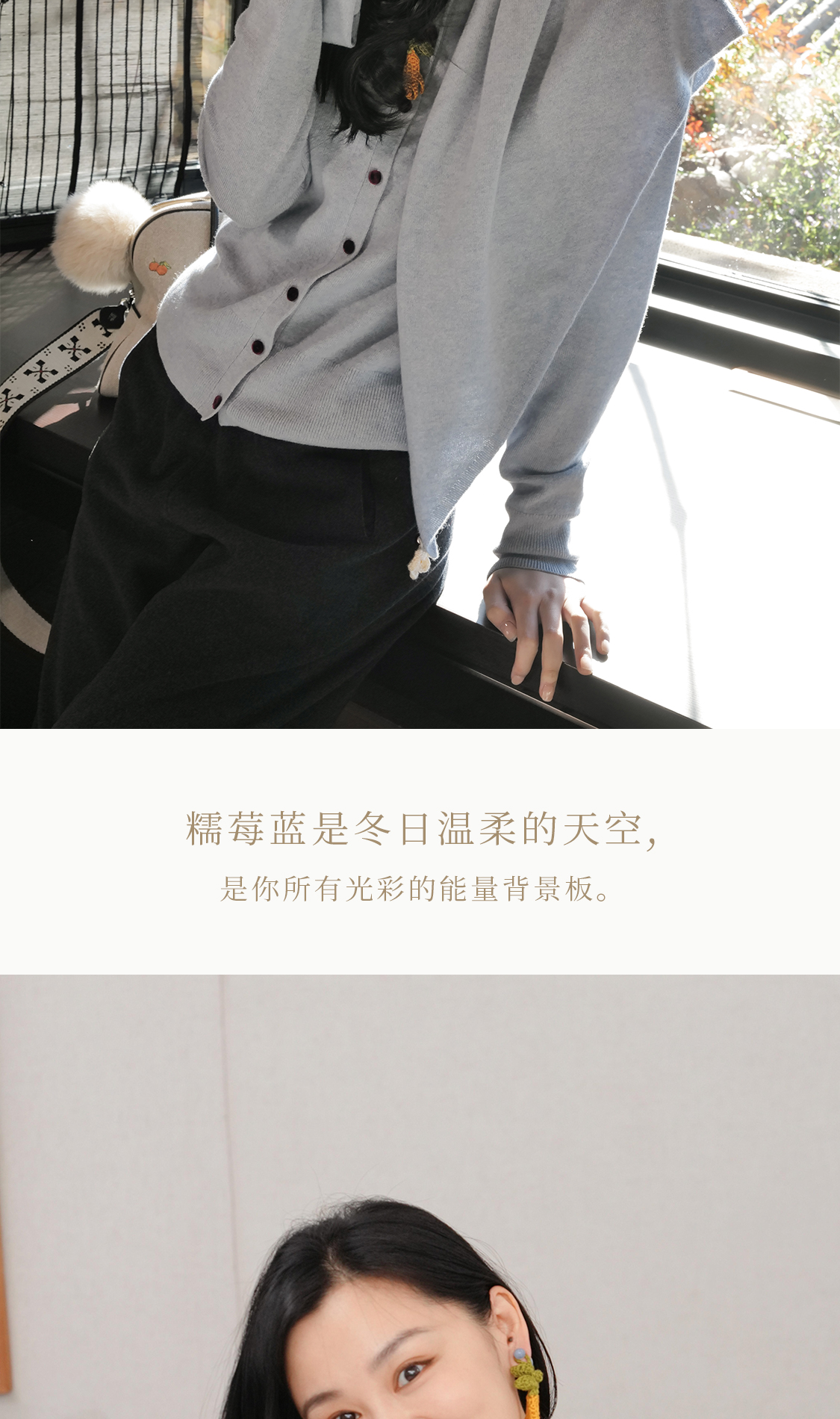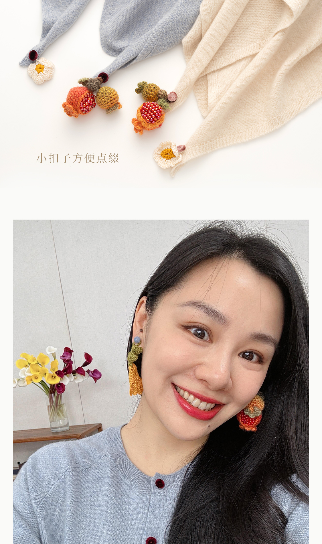栖果茸衫 100山羊绒开衫 三角型披肩套装 点坠全手工镶珠钩针花果